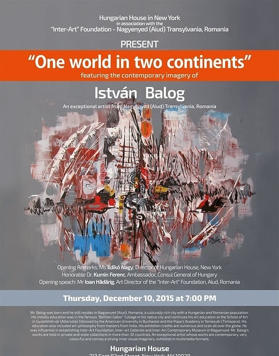 FOTO: Expoziția „O lume pe două continente”, semnată de artistul plastic aiudean Ștefan Balog, vernisată la New York