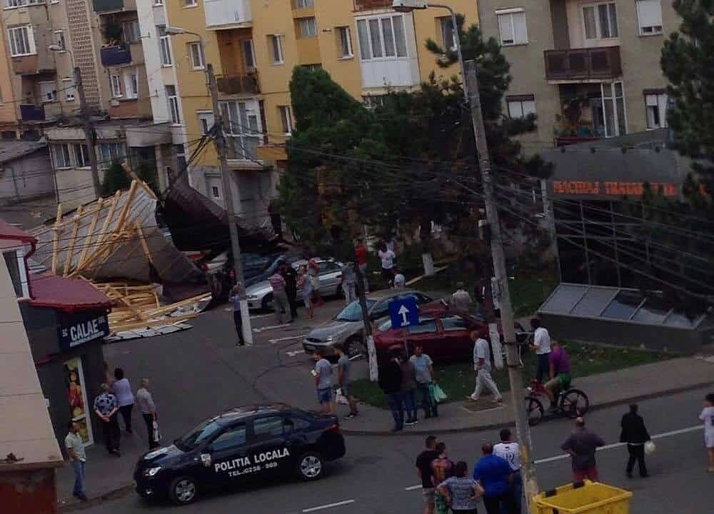 Pe strada Arnsberg, a fost smuls de vijelia puternică un acoperiş de bloc, pe Bulevardul Transilvaniei, au fost rupte umbrelele de la terase.