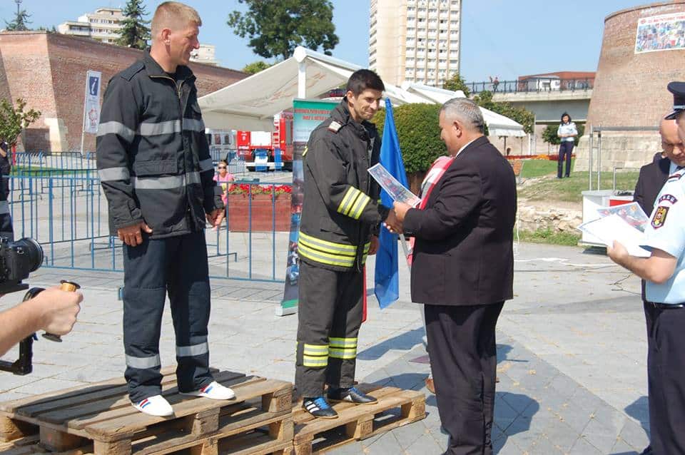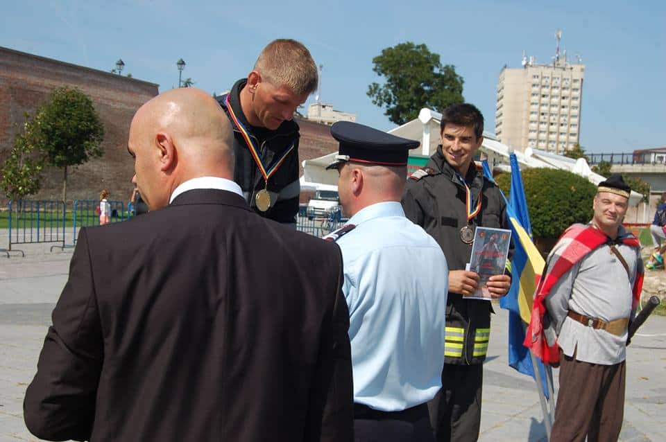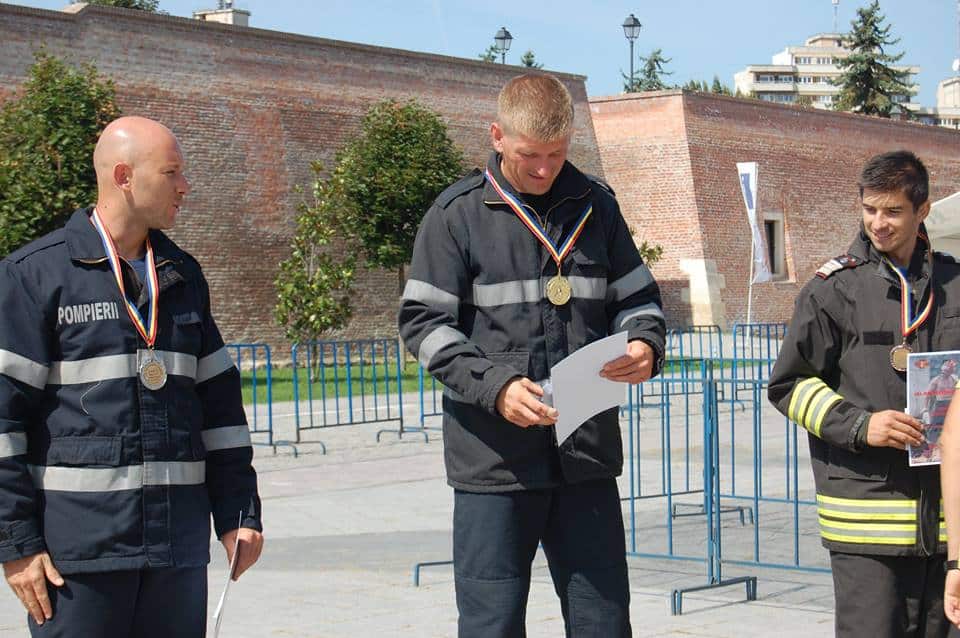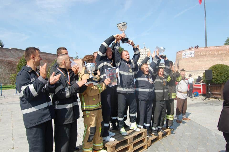 FOTO: George Nariţa din echipa ISU Alba a câştigat locul I la Concursul Naţional "Cel mai puternic pompier", de la Alba Iulia