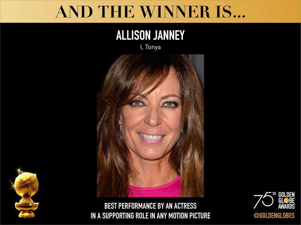 Allison Janney a primit premiul pentru cea mai bună actriţă într-un rol secundar pentru rolul ei din „I, Tonya”, un film despre viaţa controversatei patinatoare, devenită campioană olimpică, Tonya Harding. La această categorie au mai concurat actriţele Mary J. Blige („Mudbound”), Hong Chau („Downsizing”), Laurie Metcalf („Lady Bird”) şi Octavia Spencer („The Shape of Water”).
