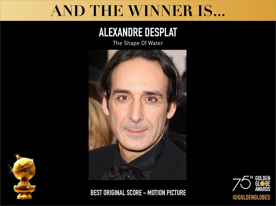 Așa cum era de așteptat, Guillermo del Toro a primit duminică seară, în cadrul celei de a 75-a ediţii a Globurilor de Aur, premiul pentru cel mai bun regizor pentru filmul „The Shape of Water”. Povestea de dragoste fantastică dintre o femeie mută și solitară şi un monstru reptilian a primit un Glob de Aur şi pentru coloana sa sonoră, care i-a fost decernat compozitorului francez Alexandre Desplat.