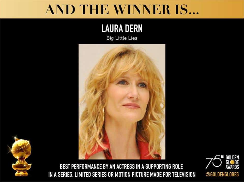 - Cea mai buna actriţă în rol secundar într-un serial, miniserial sau film de televiziune: Laura Dern ("Big Little Lies")