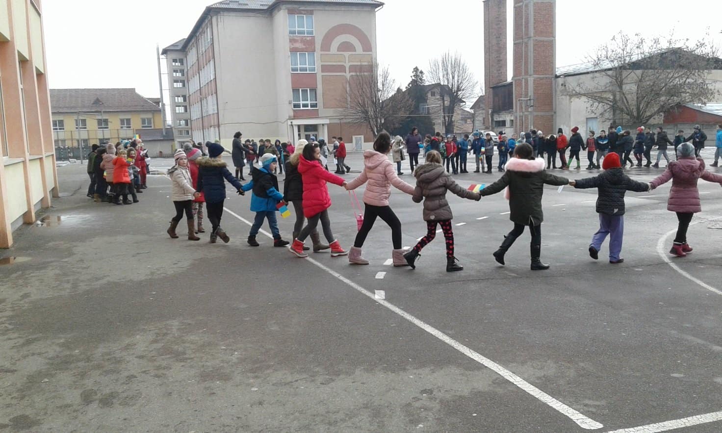 Animați de spiritul de patriotism, în ajun de sărbătoare, elevii și cadrele didactice, cu stegulețe în mâini, s-au prins într-o mare „ horă a unirii”, dovedind astfel respect și considerație față de făuritorii „ Micii Uniri – de la 1859”.