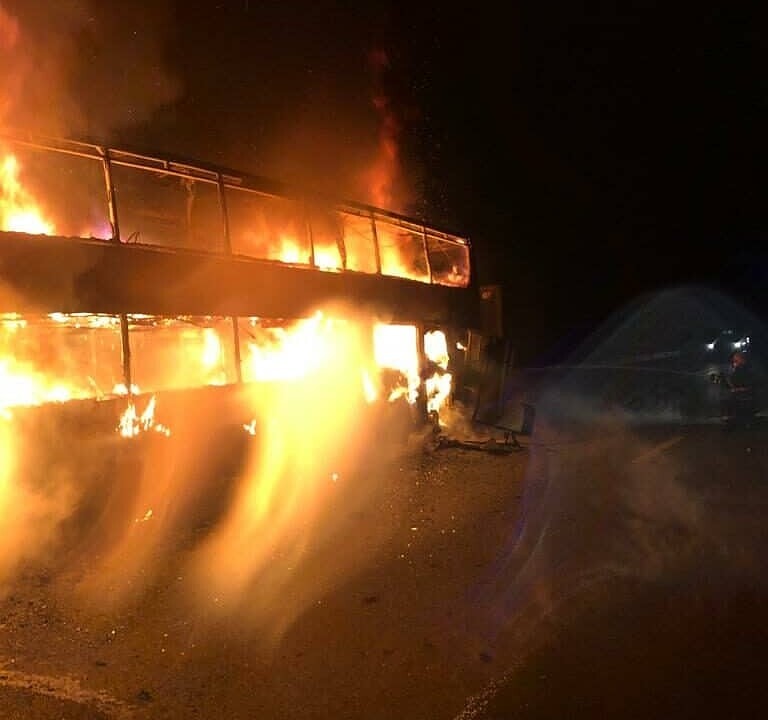 "La faţa locului, incendiul se manifesta generalizat la întreg autocarul. A ars autocarul în totalitate, iar cauza probabilă de izbucnire a incendiului a fost determinată de un scurtcircuit electric. A fost salvată remorca acestuia, care conţinea bagajele pasagerilor. Din informaţiile primite de la faţa locului, autocarul se întorcea din Franţa", a precizat Alina Voina.