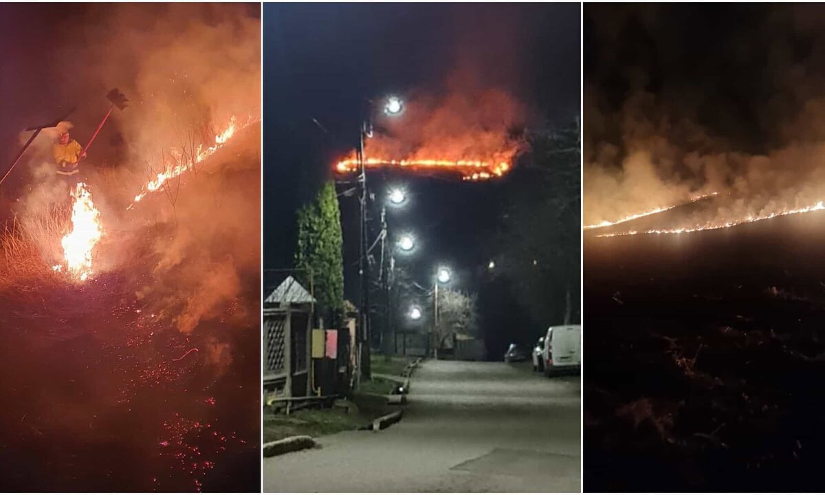 Flăcările sunt vizibile din sat, de la mare distanță și au cuprins dealurile din apropiere.