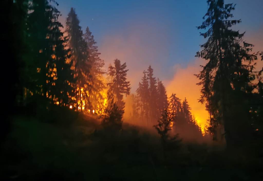 UPDATE, ora 1.00: Incendiul de vegetație uscată și coronament pădure de molid se manifestă pe o suprafață de un hectare, în zona Bărăști – Dărnilosu, la limita dintre Albac și Câmpeni, în condiții de vânt puternic (ISU Alba).