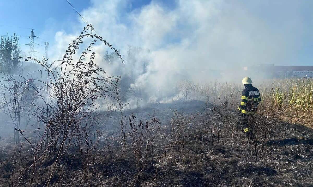 Este vorba despre un incendiu de vegetație uscată.