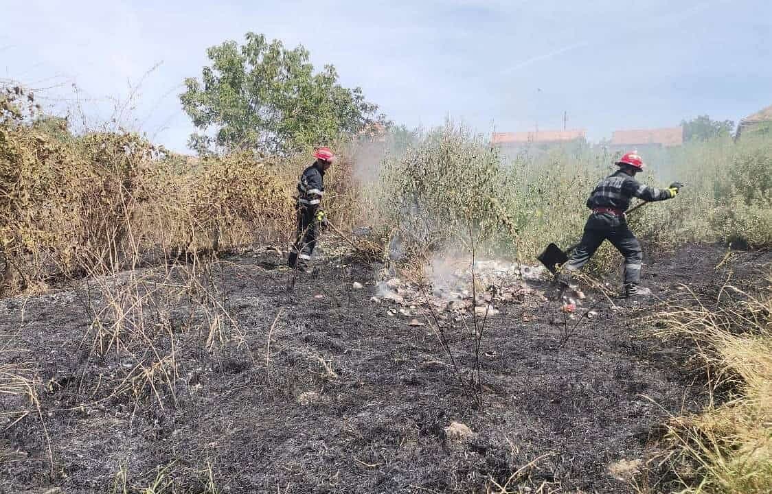 Pompierii din Aiud acționează pentru stingerea unui incendiu de vegetație uscată în localitatea Unirea I.