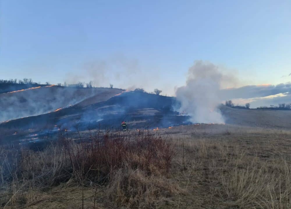 Până la ajungerea forțelor de intervenție, au ars aprox. 8 ha vegetație uscată.