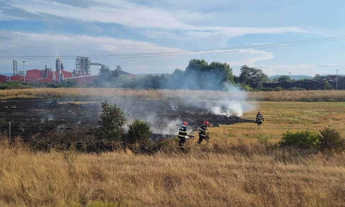 Incendiu în apropierea Autostrăzii A1. Pompierii din Sebeș intervin pentru stingerea unui incendiu de vegetație.