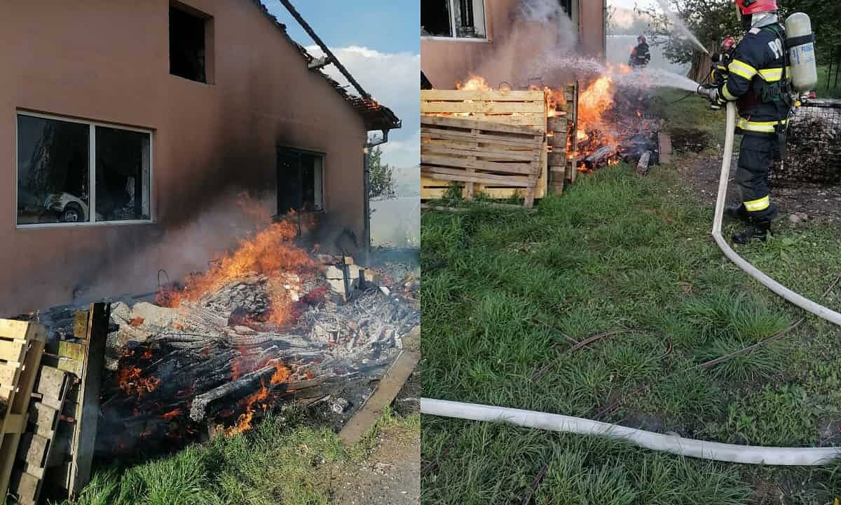 Arde acoperișul anexei pe o suprafață de aproximativ 7 mp și o stivă de lemne depozitată lângă anexă.