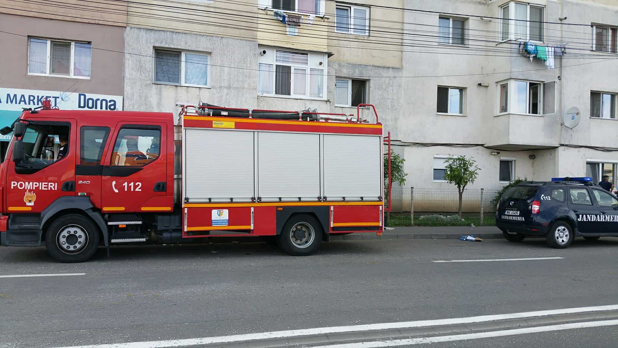 FOTO: Incendiu la apartamentul unui bloc de pe strada Gheorghe Șincai din Alba Iulia. O persoană s-a intoxicat cu fum