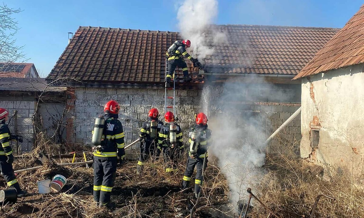 Potrivit informațiilor primite prin apelul de urgență, focul a cuprins acoperișul unei anexe gospodărești.