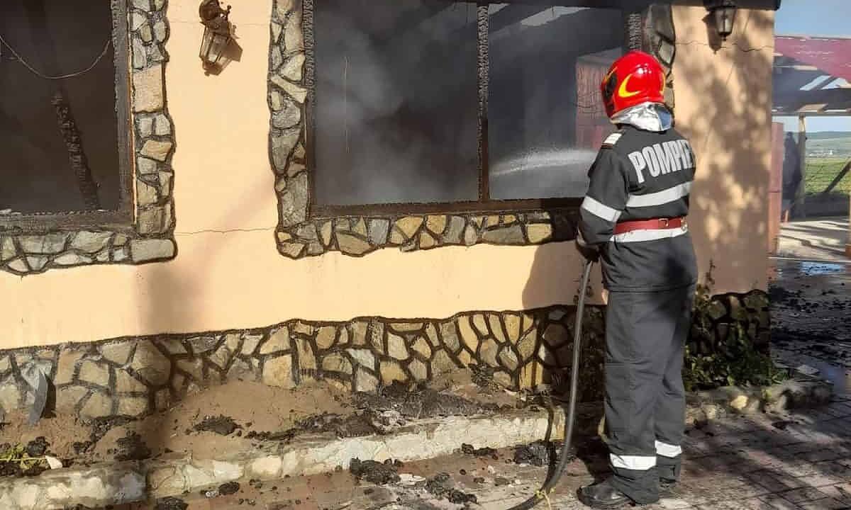 FOTO: Incendiu la un cafe-bar din Bucerdea Grânoasă. ISU Alba intervine cu două autospeciale