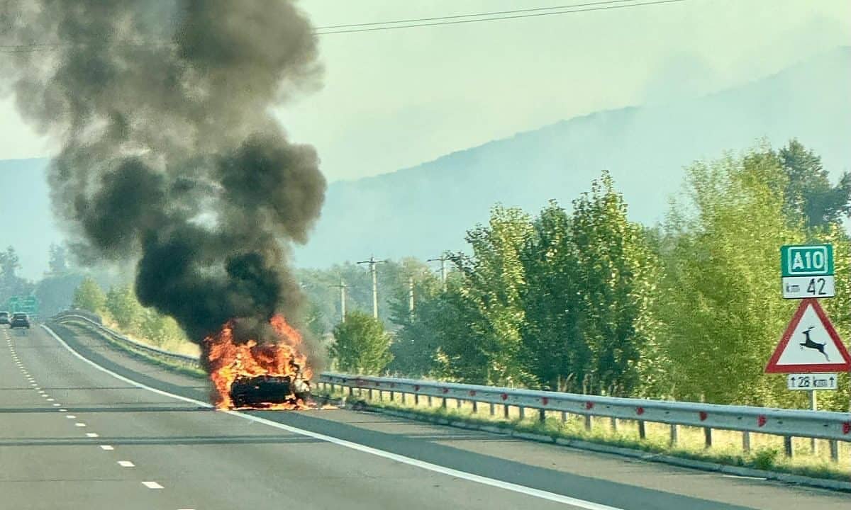 FOTO: INCENDIU pe Autostrada A10, sensul Alba Iulia-Aiud: Un autovehicul a ars ca o torță
