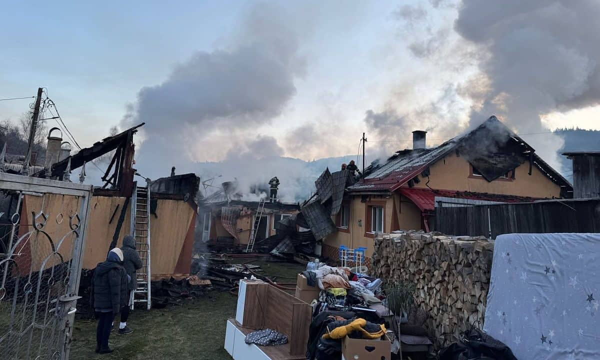 FOTO: Incendiu puternic la Cărpiniș. Au fost afectate două gospodării