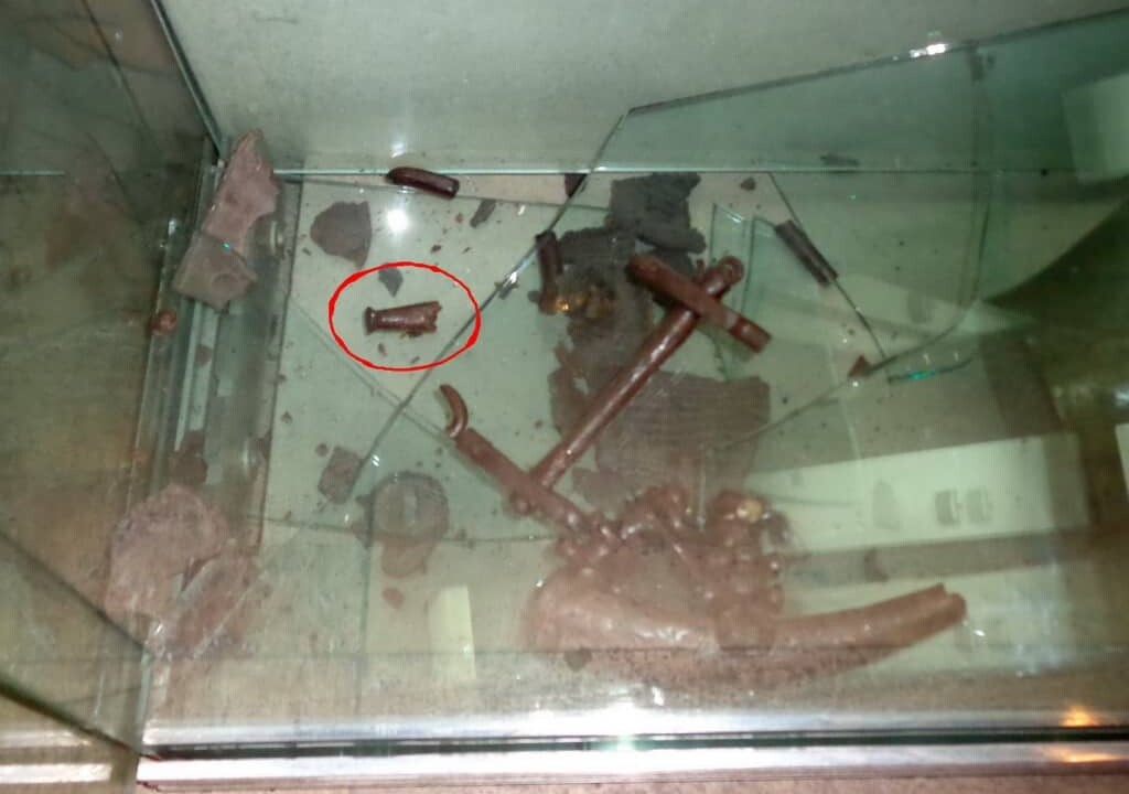 Incidentul s-a produs la etajul I al Muzeului Național al Unirii, la compartimentul cu descoperiri arheologice realizate la Cugir, la un raft cu piese din inventarul unui mormânt de războinic, secolul I d. Hr.