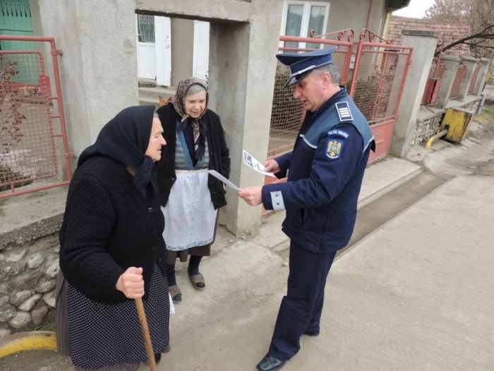 Cu această ocazie, au fost distribuite peste 200 de materiale informative-preventive, iar poliţiştii au purtat discuţii, în special cu persoanele în vârstă, care locuiesc singure sau în case izolate, oferindu-le sfaturi cu privire la protejarea locuinţei şi a bunurilor din gospodărie precum şi câteva recomandări care să-i ajute să recunoască un potenţial infractor.