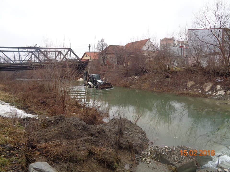 Primăria Teiuș a început lucrările de amenajare albiei râului Geoagiu pentru a reduce eroziunea malurilor și protecția picioarelor podului rutier.