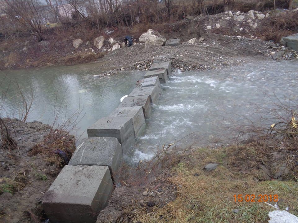 FOTO: Lucrări de amenajare a unui prag de fund în albia râului Geoagiu pentru a reduce eroziunea malurilor