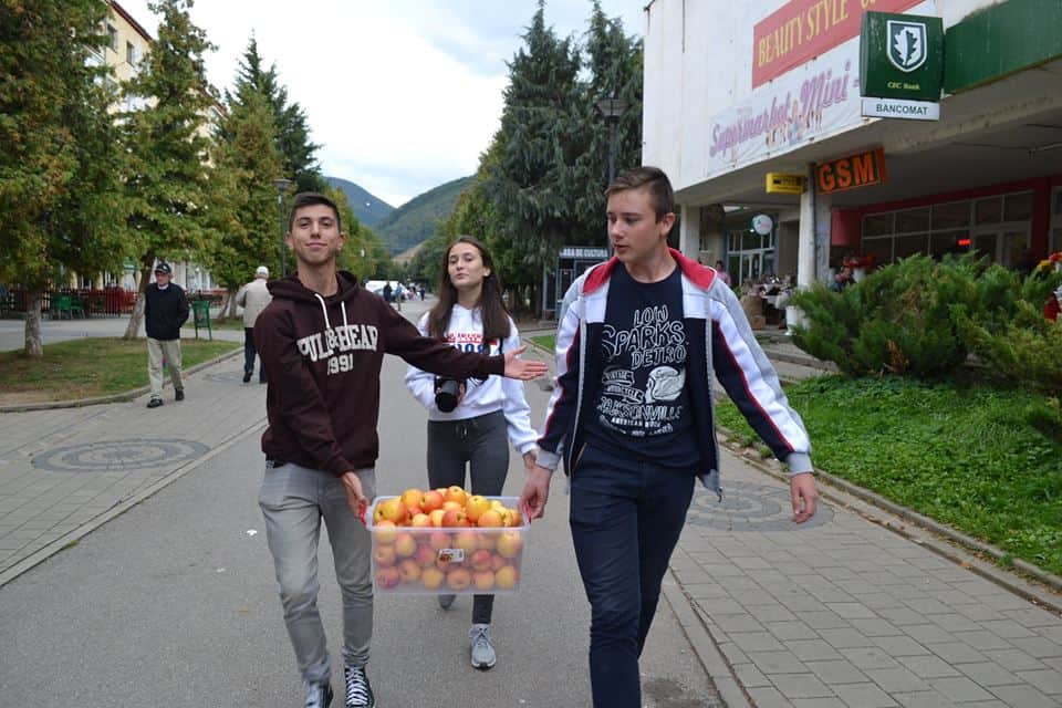 FOTO: Mere românești împărțite pe stradă, la Cugir. Campanie inedită a unei asociații din oraș