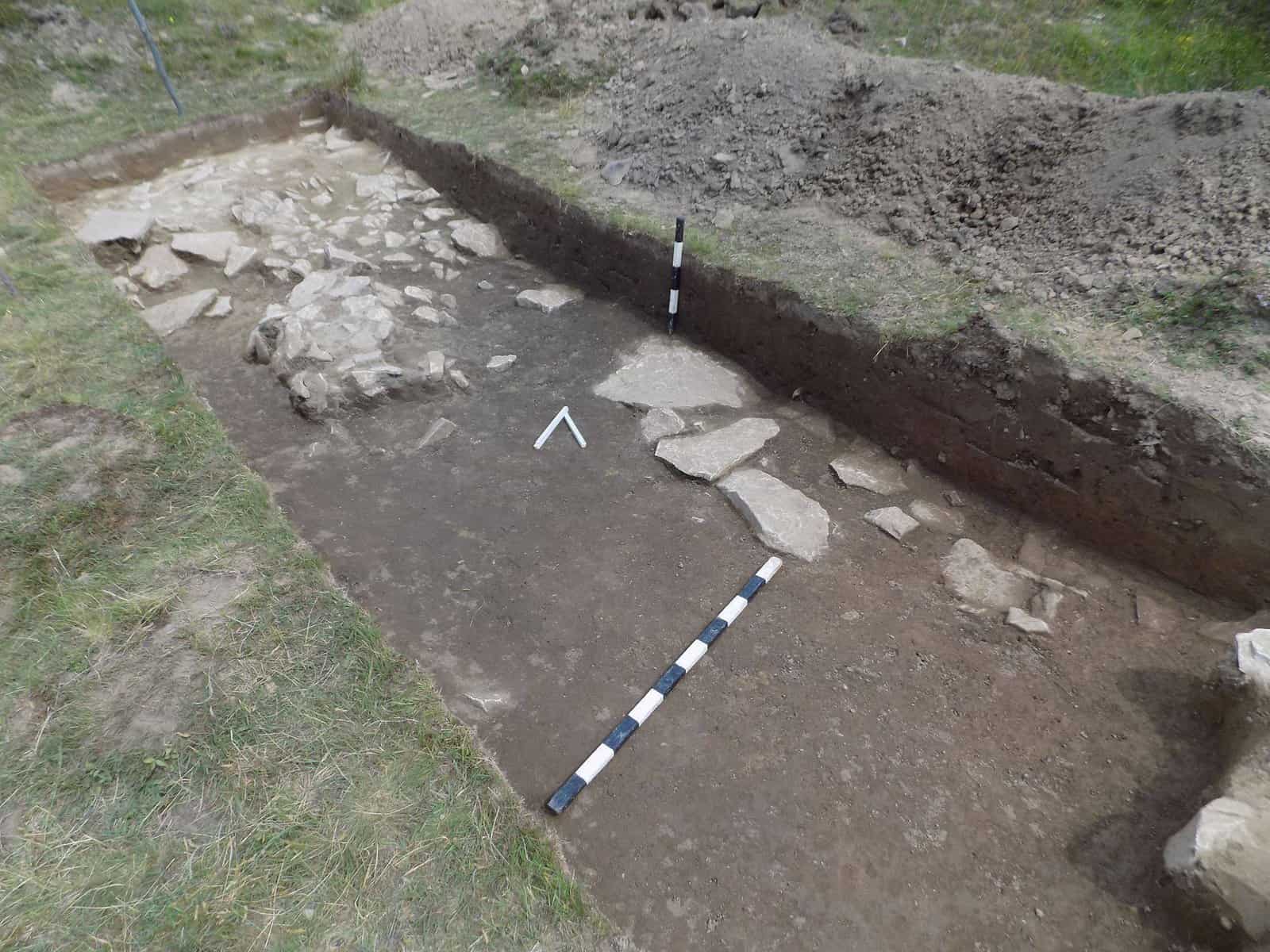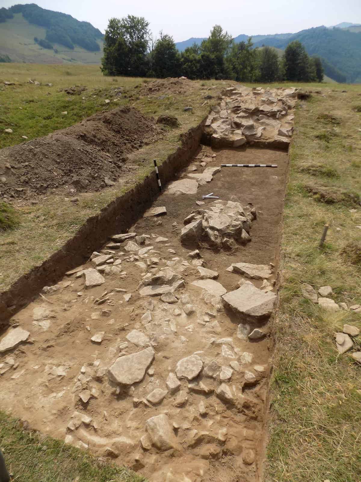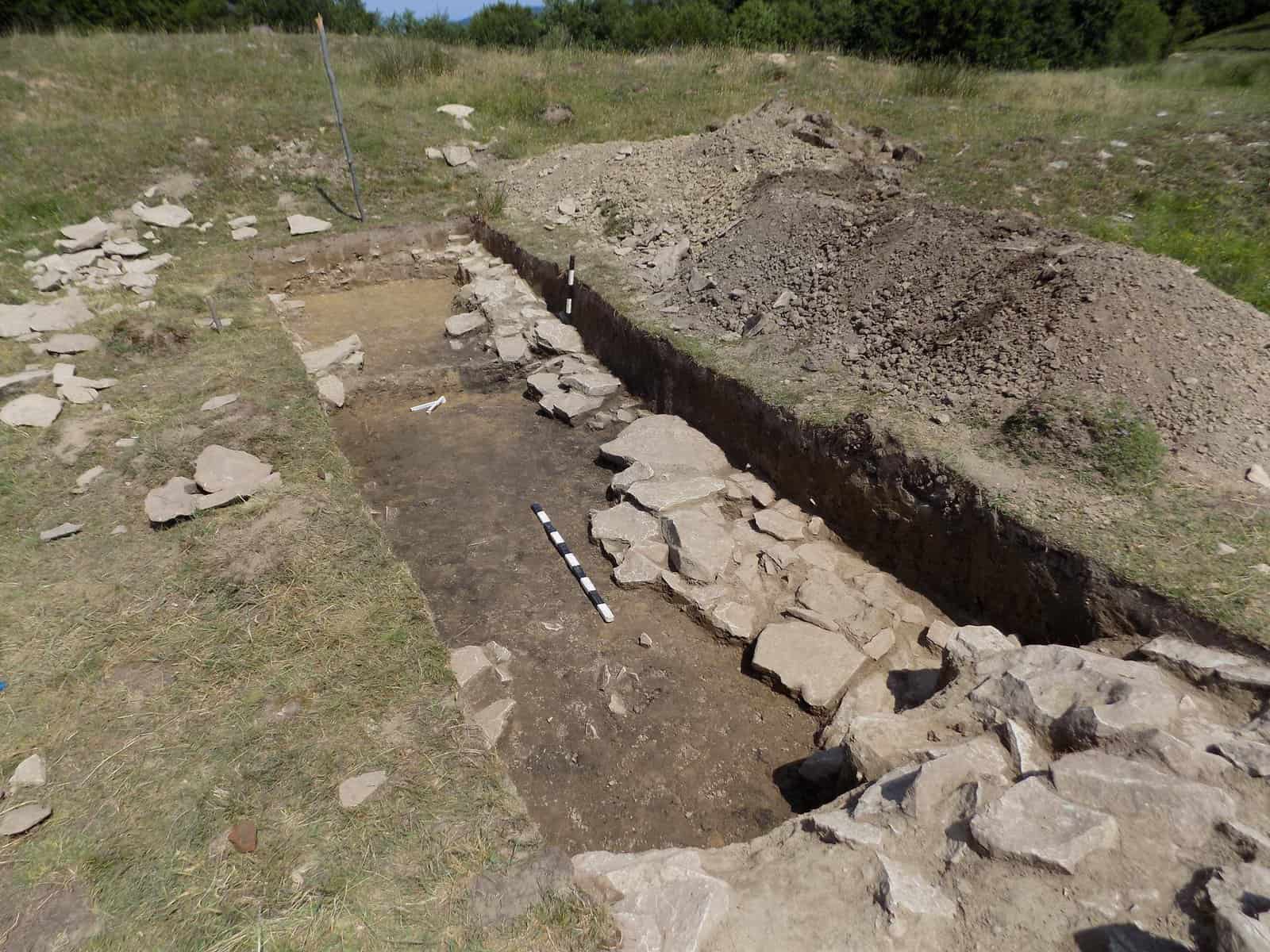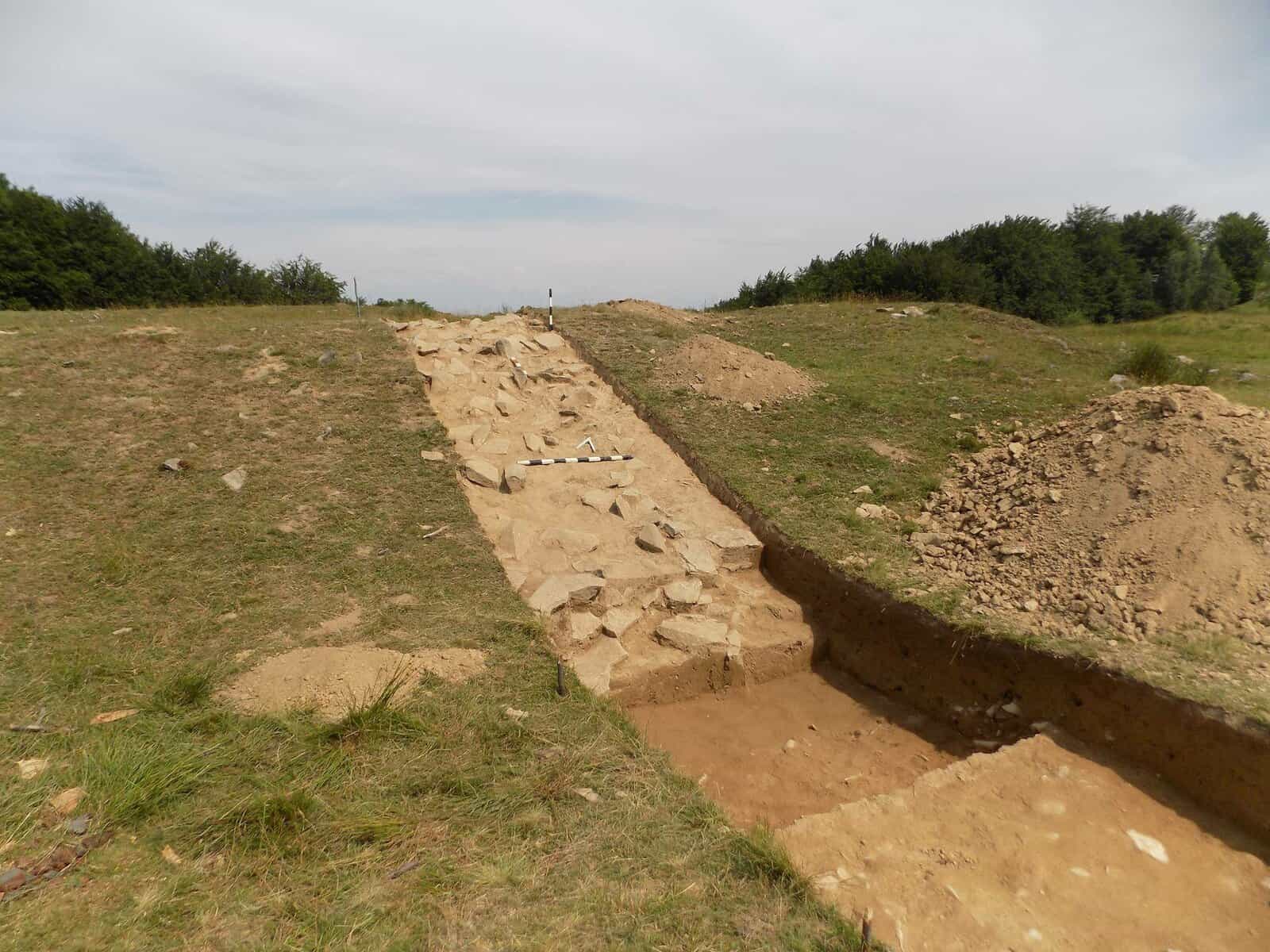 Fragmentele ceramice descoperite în șanț datează fortificația în epoca romană. În interior, arheologii au identificat o structură din piatră legată cu pământ, lungă de 6 m, orientată NV-SE, amenajată direct pe nivelul de călcare. În opinia specialiștilor, acesta datează din epoca romană, dovadă stând numeroasele fragmente ceramice și piese de fier descoperite în strat și pe nivel. Această structură din piatră reprezintă urmele turnului de observație, care, probabil, era construit din lemn. Un complex din epoca medievală deranjează nivelul roman în carourile 9 și 10 ale secțiunii.