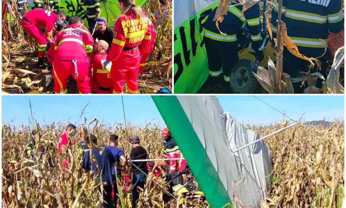 Cele două persoane de sex masculin care se aflau în motodeltaplanul care s-a prăbușit, au primit îngrijiri medicale la fața locului și sunt transportate la UPU Sibiu de către echipajele SMURD.