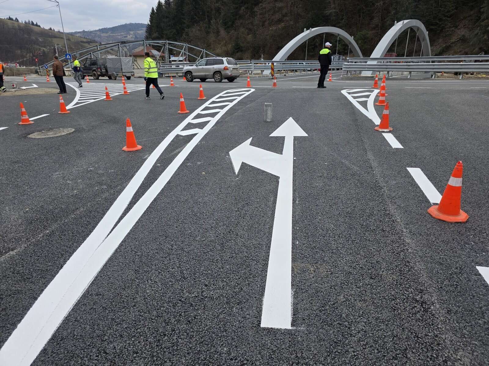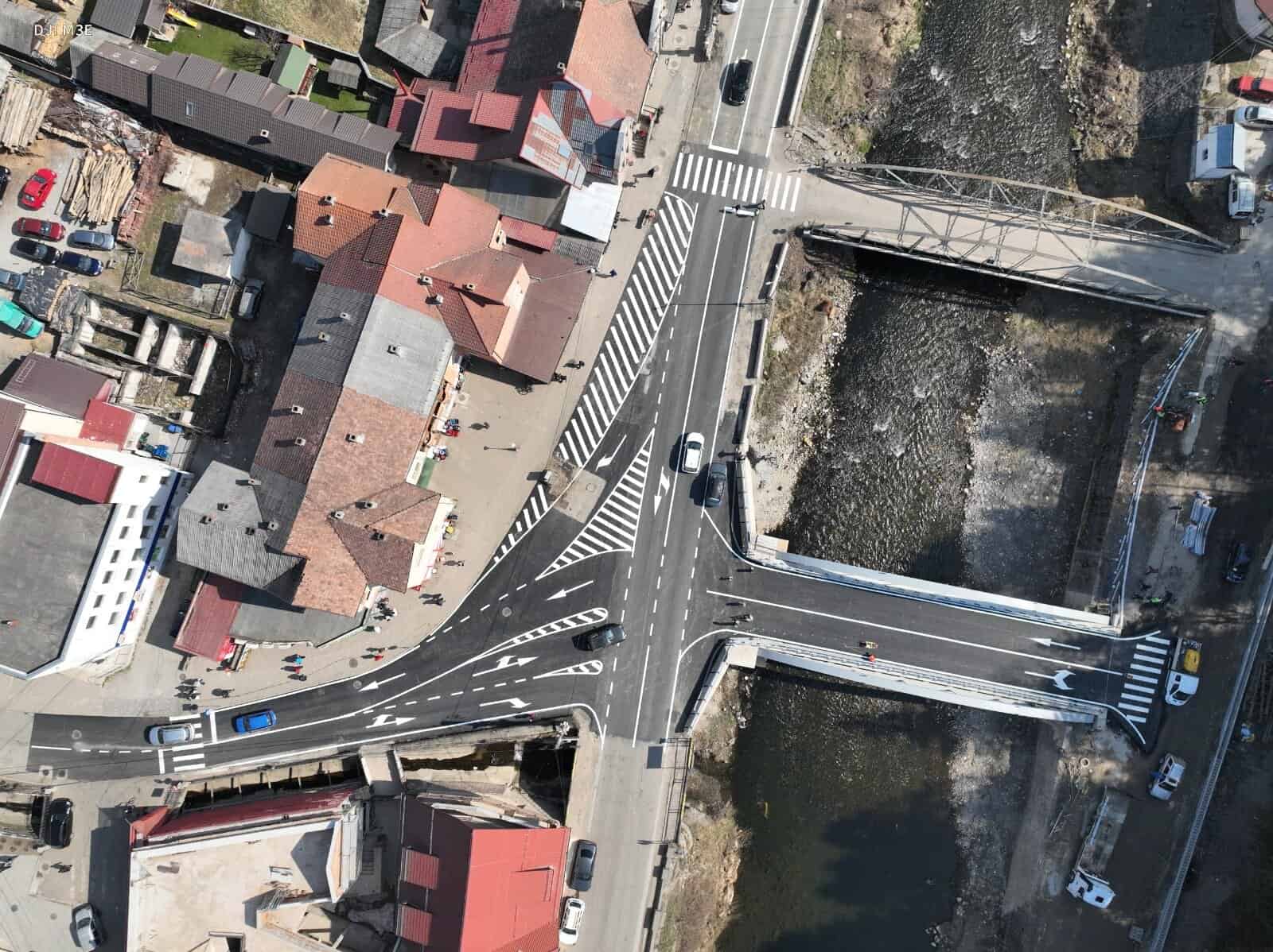 FOTO: Noul pod peste Arieș de la Câmpeni, aproape de finalizare. A fost turnat asfaltul și realizate marcajele rutiere