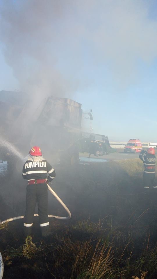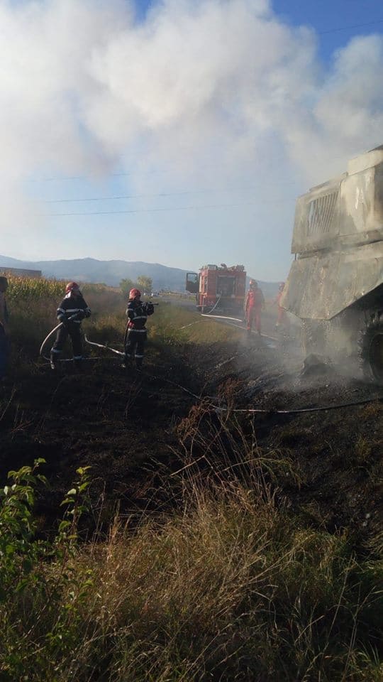O combină de cereale a luat foc miercuri după-amiază pe DN7, între Sebeș și Vințu de Jos. Pentru stingerea incendiului au intervenit pompierii militari de la garda Sebeș.