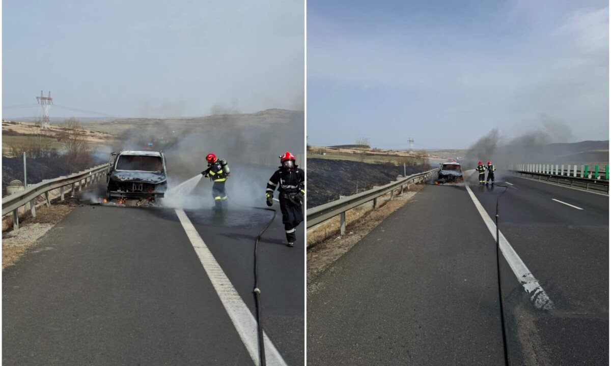 O mașină a ars sâmbătă pe Autostrada A1 Sebeș-Sibiu, în zona Sălişte. Incendiul s-a extins și la vegetația uscată de lângă parapet, fiind vânt puternic în zonă. Traficul rutier în zonă a fost blocat temporar, pe sensul Sebeș - Sibiu.