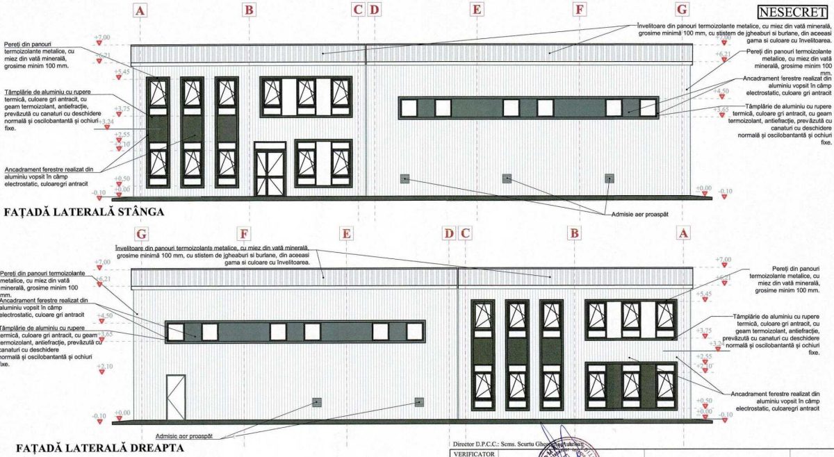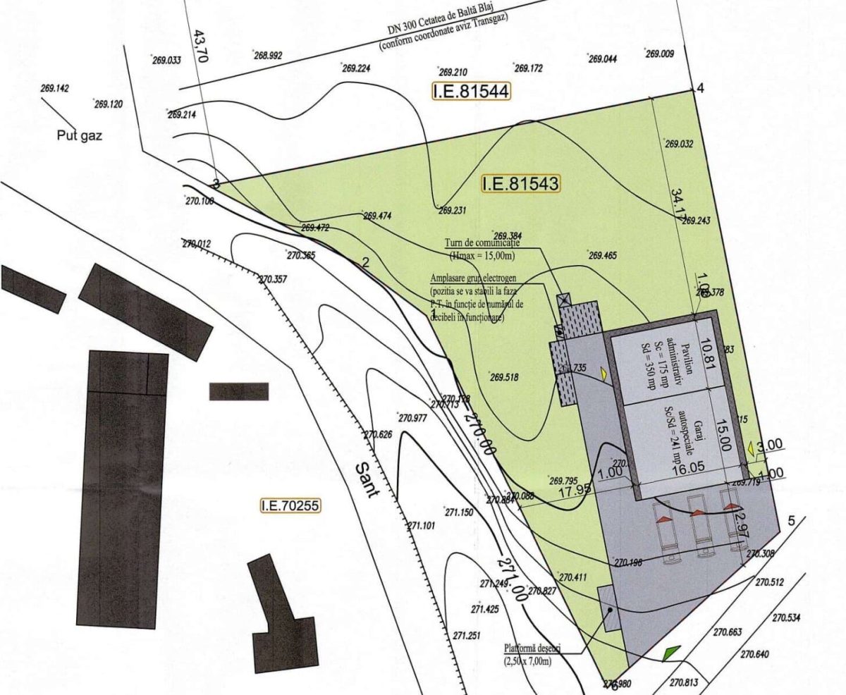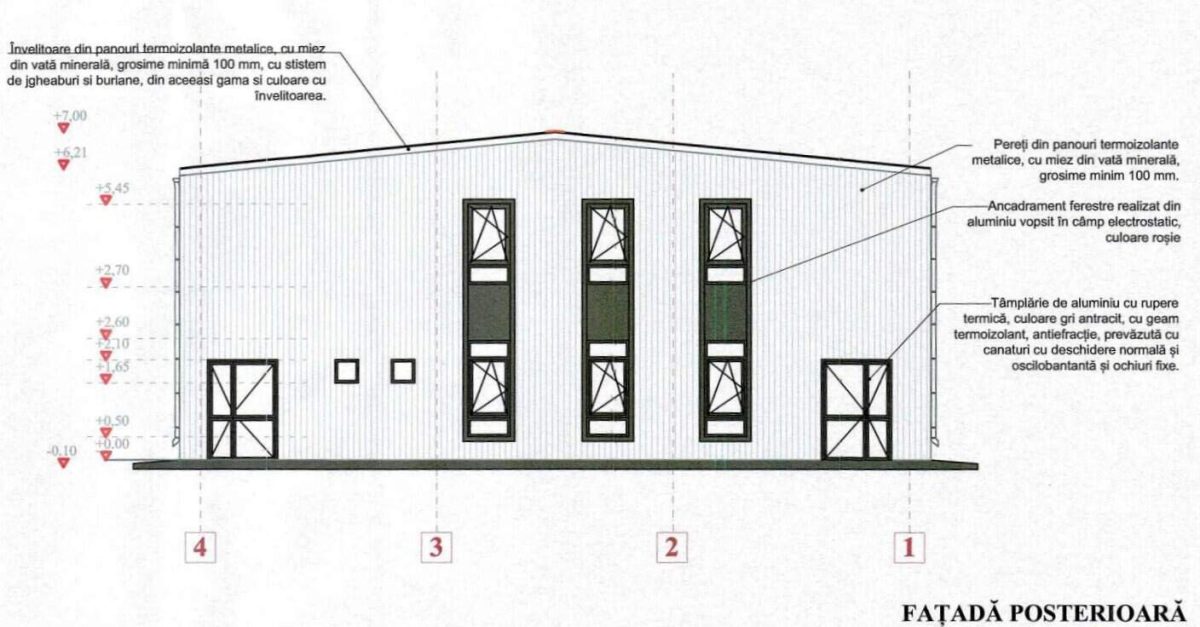 Clădirea administrativă va avea regimul de înălțime P+1, cu o suprafață construită de 175 mp și o suprafață desfășurată de 350 mp.