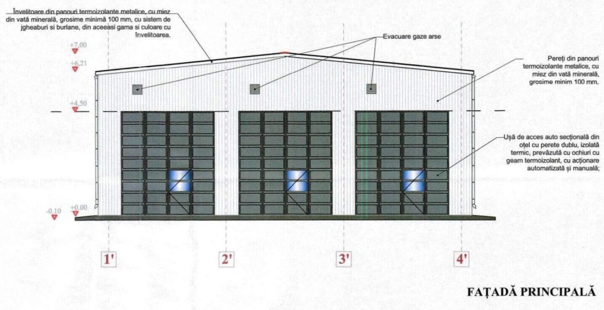 Garajul va avea un regim de înălțime Parter înalt, cu o suprafață construită de 241 mp și o înălțime liberă minimă de 4,5 m, cu trei boxe, fiind proiectat pentru adăpostirea autospecialelor.