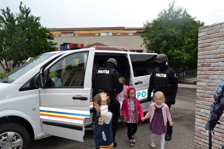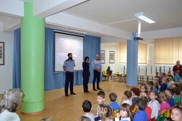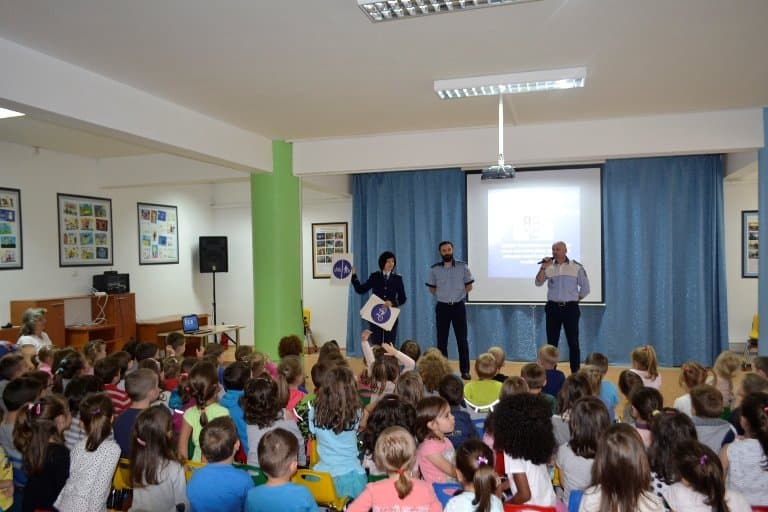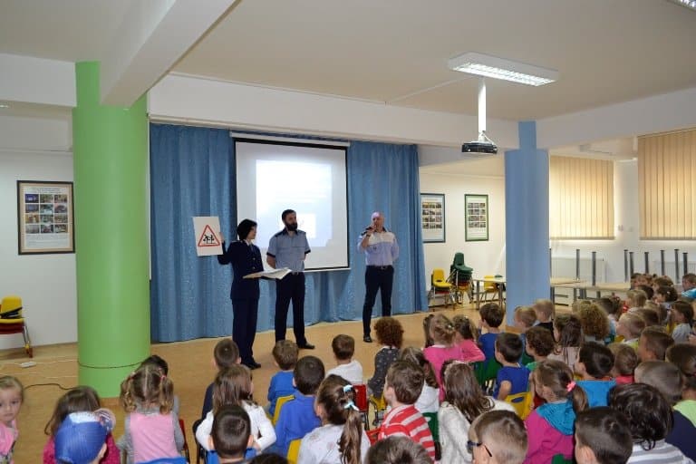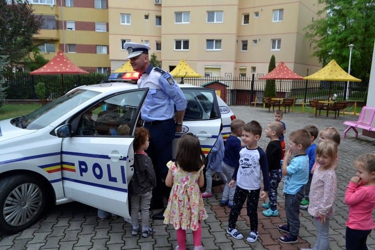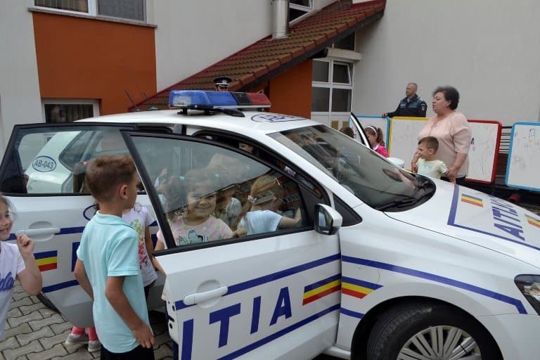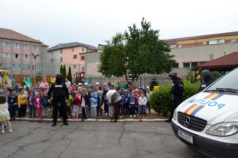 La finalul lecţiei de educaţie rutieră, copiii au fost invitaţi să-i cunoască mai bine pe poliţiştii Serviciului Pentru Acţiuni Speciale, pe cei de la Serviciul Rutier dar şi pe jandarmi şi să vadă, îndeaproape, autospecialele pe care aceştia le folosesc la intervenţii.