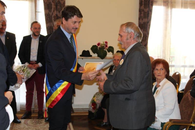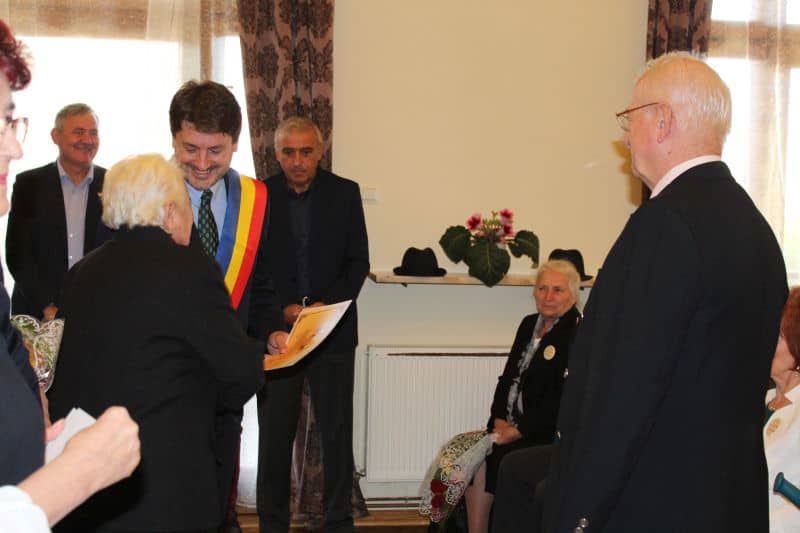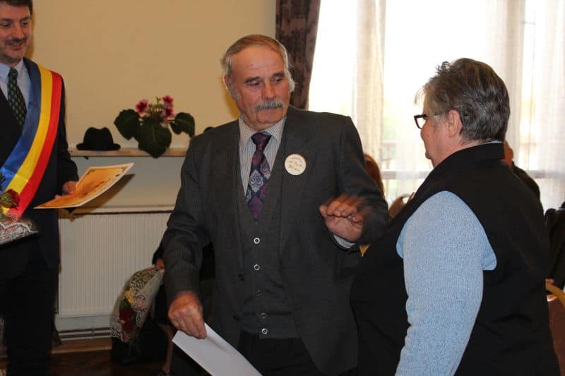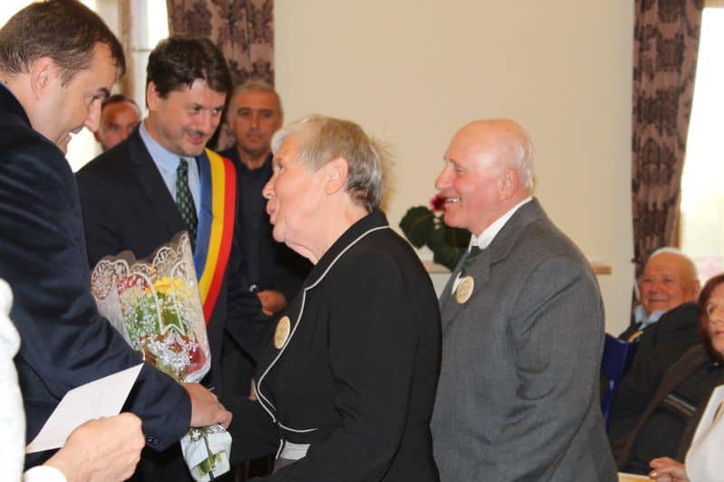 Înainte de petrecere, primarul Adrian Teban i-a invitat pe sărbătoriți în Sala de Ședințe a Casei de Cultură a orașului Cugir, pentru a-i felicita și le-a oferit diplome, flori și câte o sumă de bani (simbolică). Apoi au venit preoții și au făcut o slujbă de reînnoire a jurămintelor în fața lui Dumnezeu.
