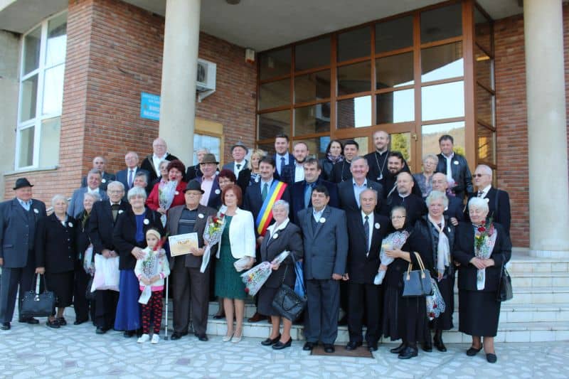 FOTO: Petrecere mare la Cugir! 15 cupluri de vârstnici și-au sărbătorit ”nunta de aur” cu muzică, dans, mâncare și băutură