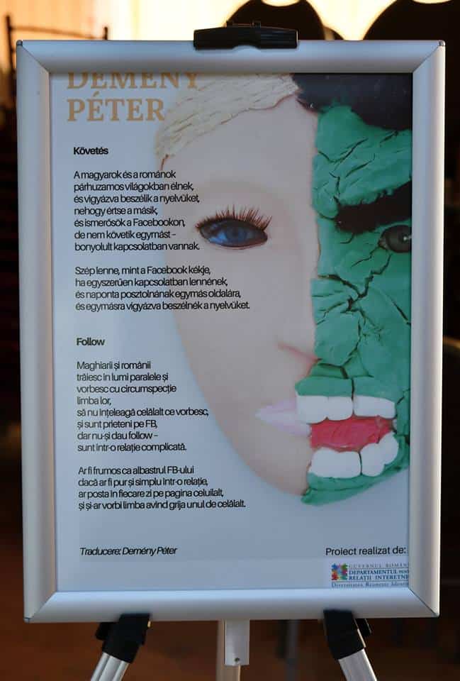 - Expoziție de poezia vizuală: seducătoare aventură poetică bilingvă + o parafrază savuroasă / elragadó kétnyelvű költészeti kaland+egyjóízű parafrázis: Demény Péter, Horváth Benji, Karácsonyi Zsolt, Kelemen Hunor,Laczkó Vass Róbert, László Noémi, Markó Béla, Szilágyi Domokos. Proiect realizat de Departamentul pentru Relații Interetnice - Guvernul României.