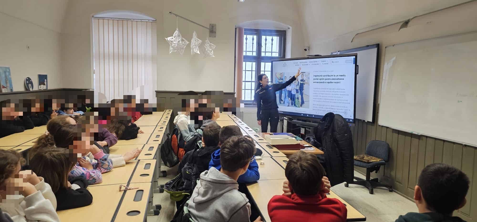 FOTO: Polițiștii din Alba, activități de prevenire a violenței în mediul școlar, la unități de învățământ din Aiud