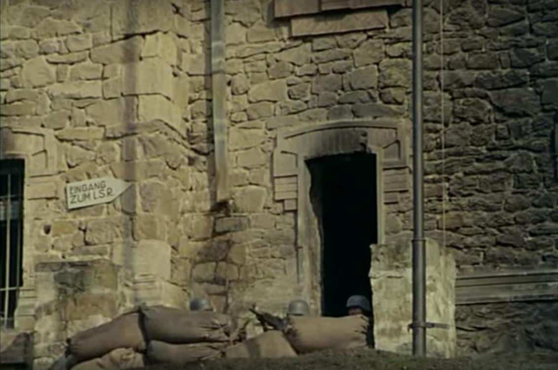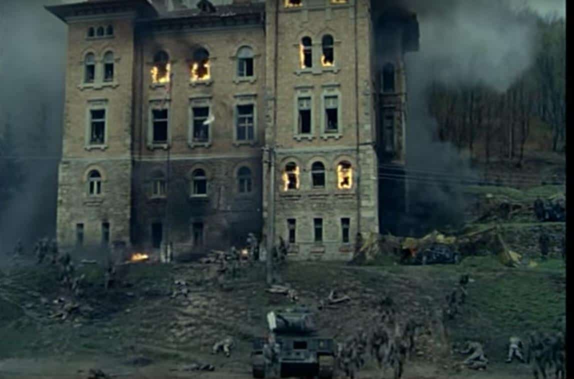S-a aprins cam tot ce era din lemn. Unul dintre cascadori chiar a greșit fereastra de la care trebuia să se arunce, din cauza fumului gros. După filmările la ”Noi, cei din linia întâi”, castelul arăta chiar ca după război: plafoane căzute, pereți arși, porțiuni șubrezite și multe altele. „Dăm foc, apoi vă promit că trimit bani de reparații”, a spus regizorul. Apoi au tras în el cu tancurile și pirotehniștii au aruncat în aer porțiuni de la etaj. Banii de reparații n-au venit niciodată, iar castelul a rămas în uitare. O ruină care are, chiar și așa, un farmec aparte. Prețul pentru celebritatea pe care i-a adus-o transformarea lui în platou de filmare, a fost plătit cu vârf și îndesat.