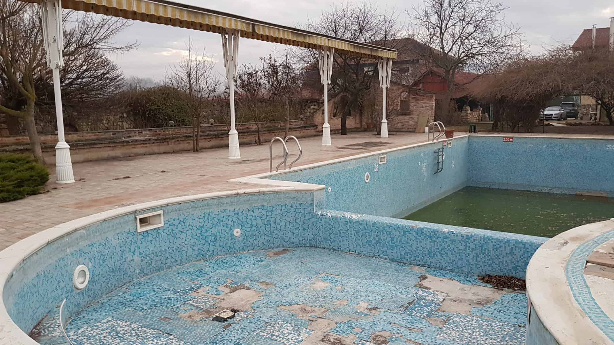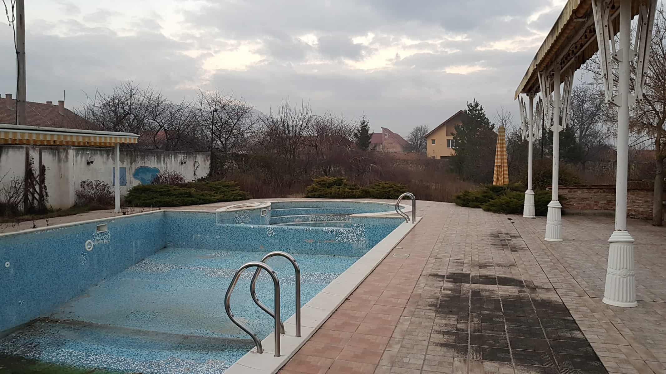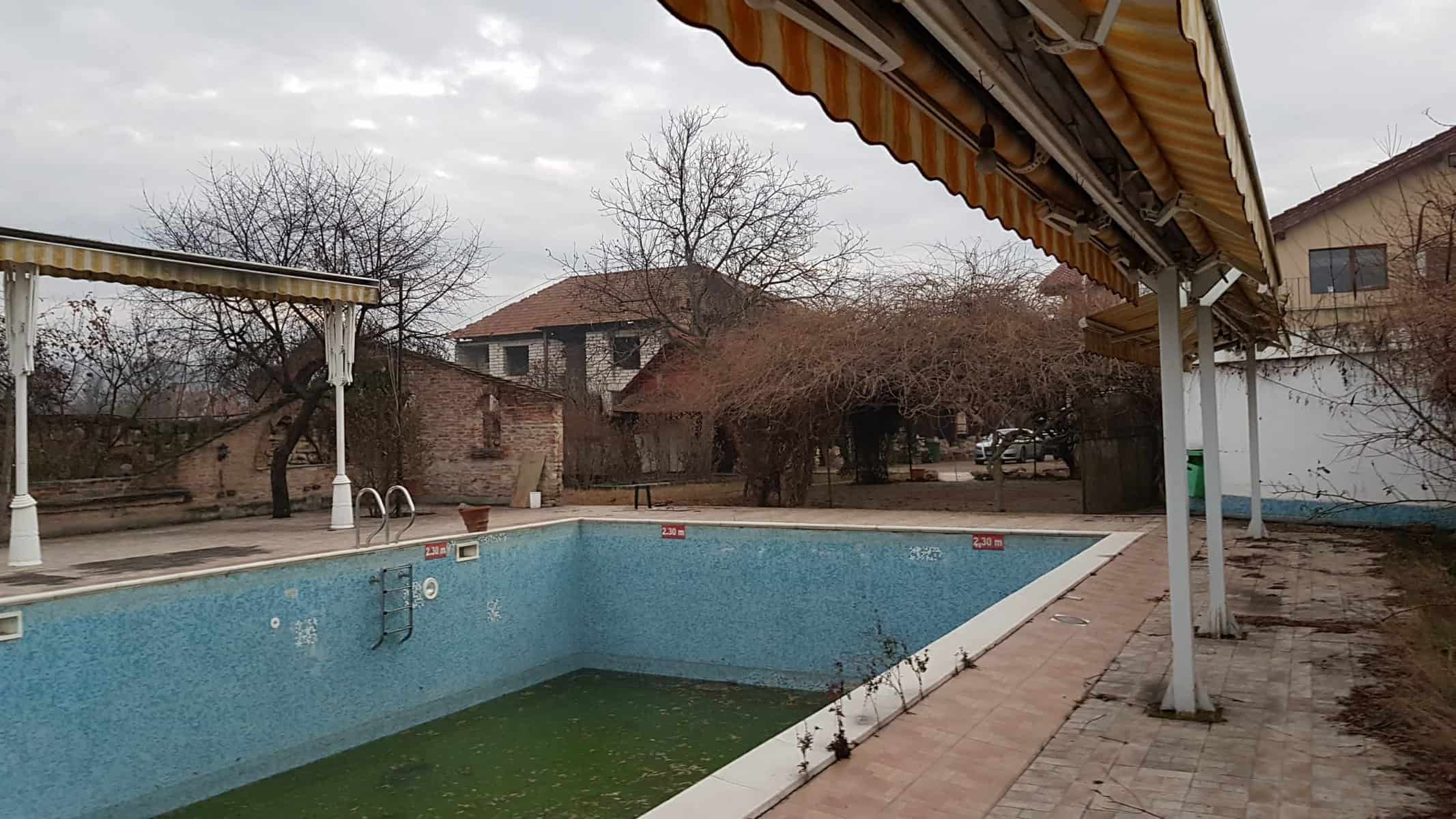 Locul este însă spectaculos. Are două piscine legate una de cealaltă, o grădină mare, parcare, terase exterioare, spații de recreere, o terasă acoperită, cuptor de pâine, 14 camere duble, un restaurant la etaj, o bucătărie profesională, spații de locuit pentru personal și o cramă imensă la subsol, care poate găzdui mese de până la 100 de persoane. Este vorba de sute de metri pătrați construiți și aproximativ un hectar de teren intravilan.