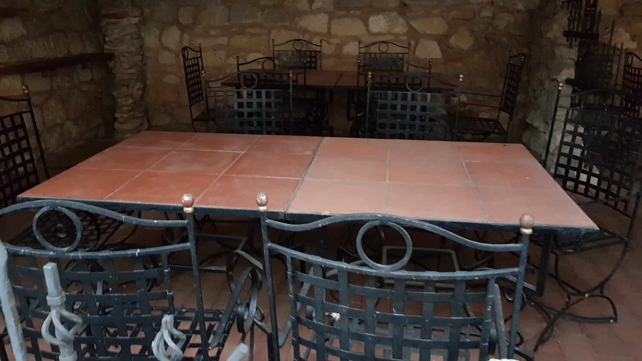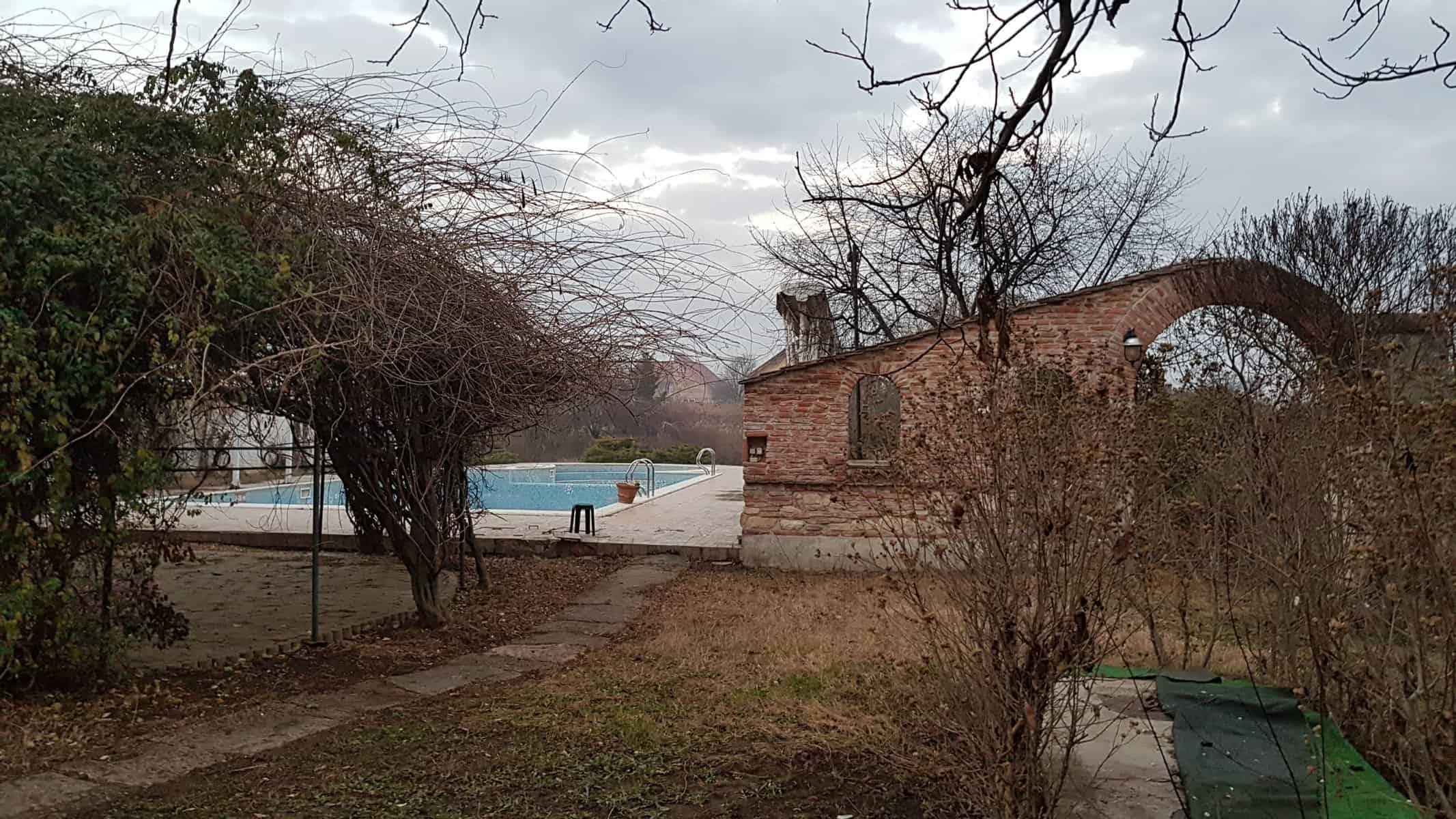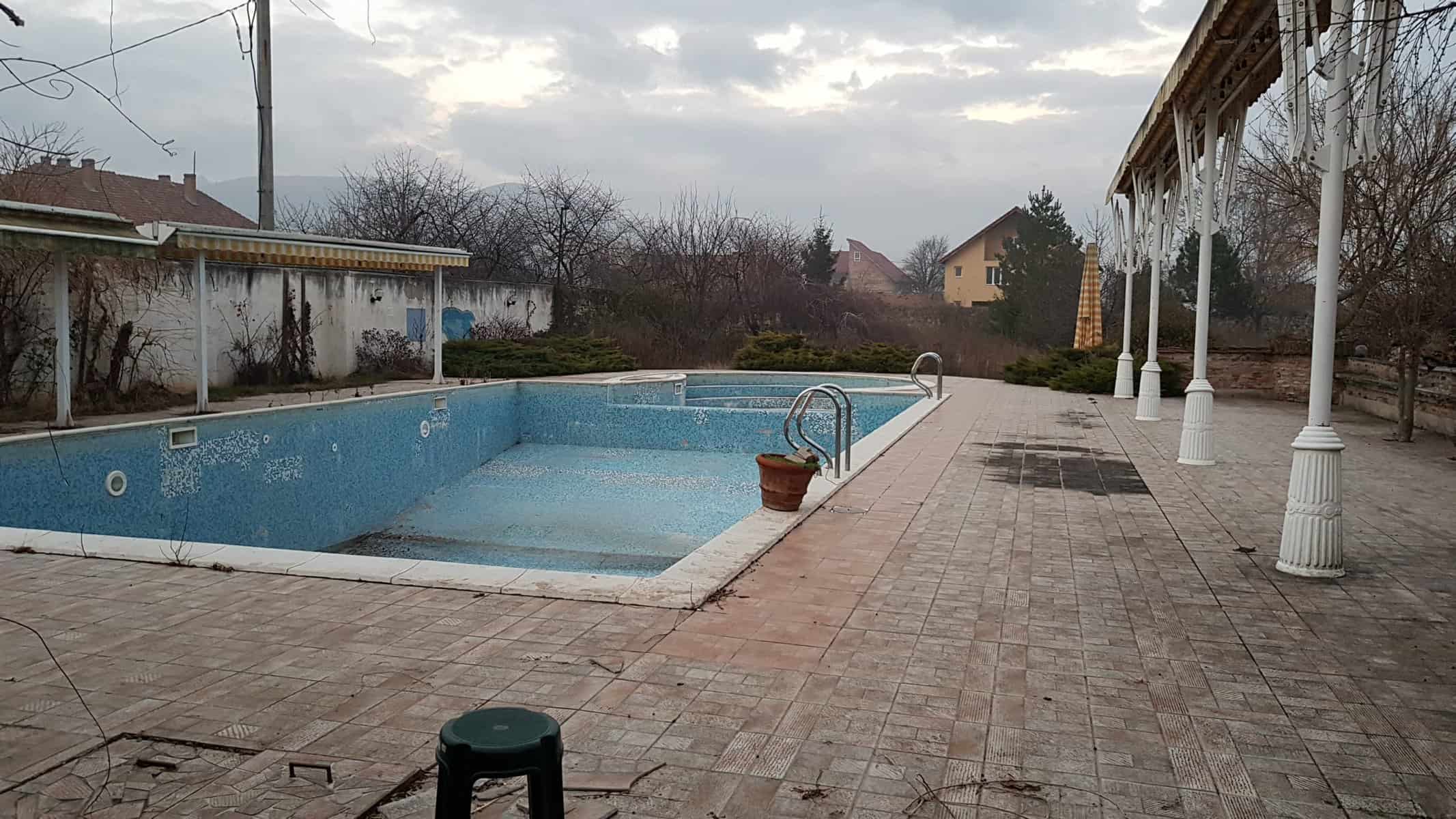 Locul este însă spectaculos. Are două piscine legate una de cealaltă, o grădină mare, parcare, terase exterioare, spații de recreere, o terasă acoperită, cuptor de pâine, 14 camere duble, un restaurant la etaj, o bucătărie profesională, spații de locuit pentru personal și o cramă imensă la subsol, care poate găzdui mese de până la 100 de persoane. Este vorba de sute de metri pătrați construiți și aproximativ un hectar de teren intravilan.