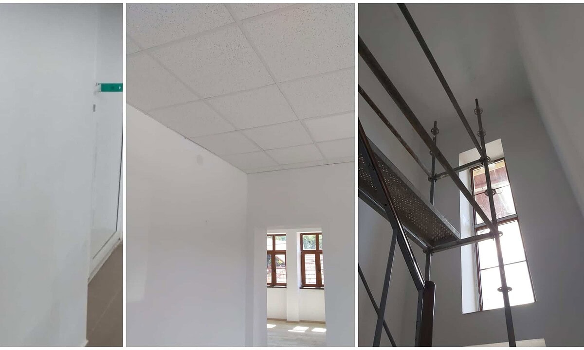 Astfel, în perioada 10 -13 august 2020, au fost executate aceste reparații la tavan și la casa scărilor.