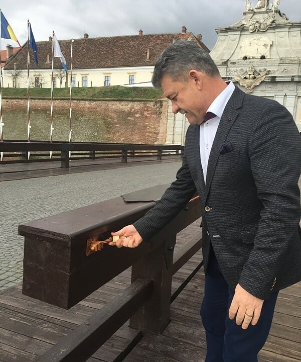 FOTO: Primarul Mircea Hava şi-a pus "lacătul iubirii pentru oraşul Alba Iulia", la Poarta a III-a a Cetăţii