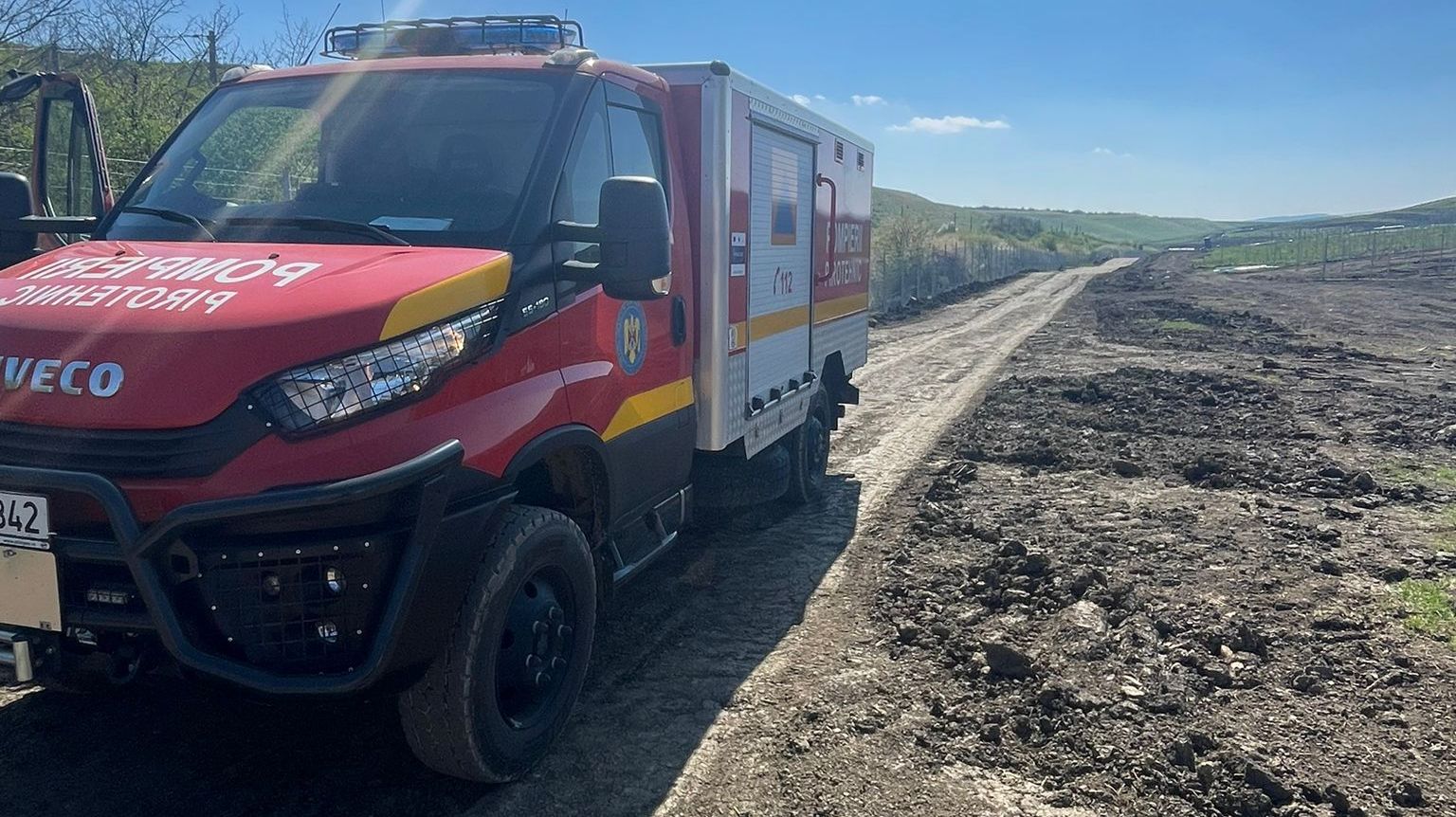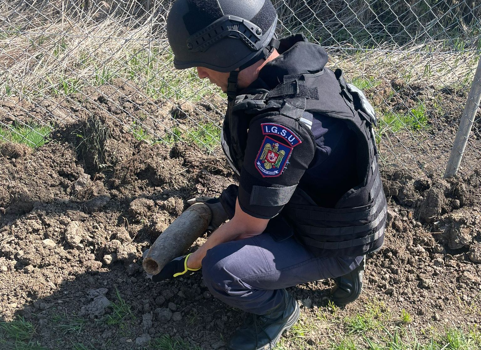 FOTO: Proiectil exploziv, găsit pe șantierul parcului fotovoltaic din Lunca Mureșului. Au acționat pompierii din Alba Iulia