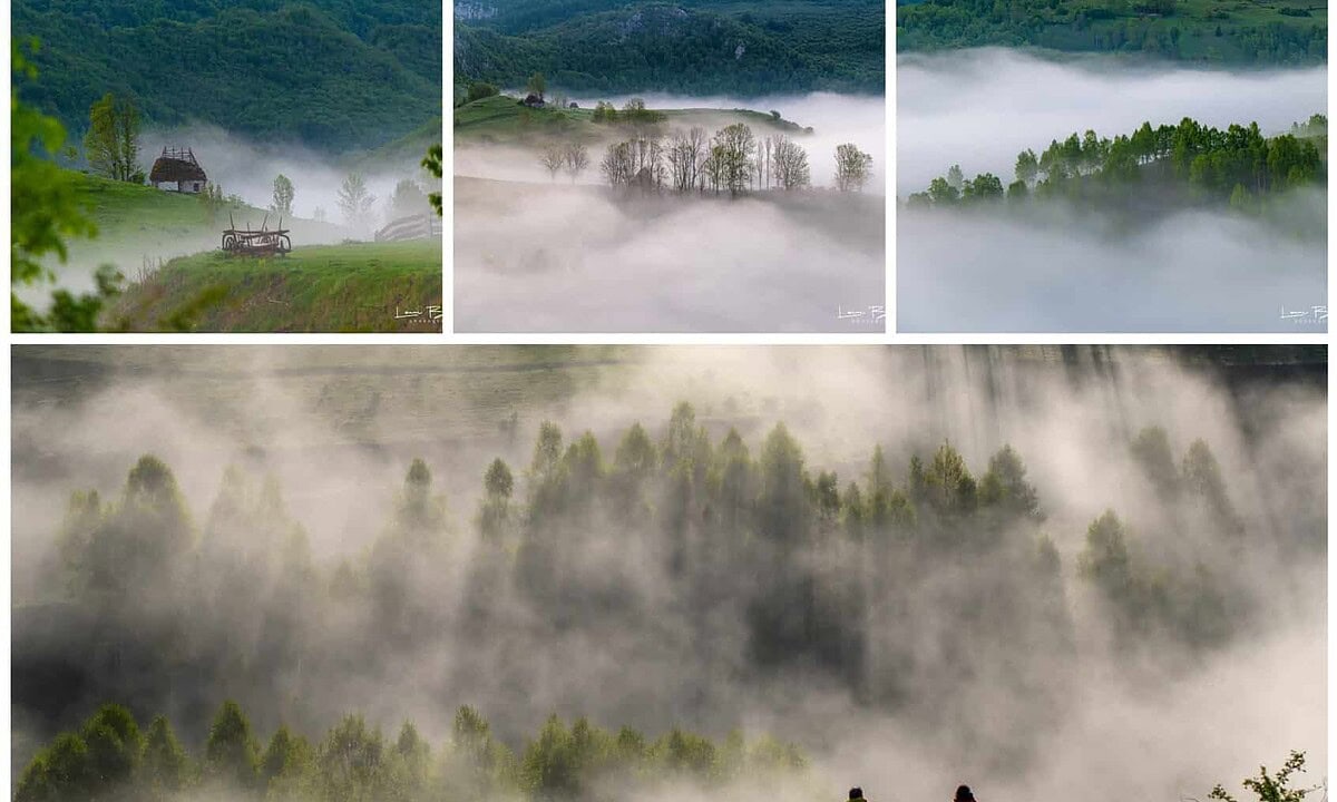 Pădurea apare înconjurată de aburi de ceață, iar soarele își face loc timid peste culmi dealurilor, contribuind la un tablou în continuă schimbare, pe care doar ochiul atent al unui fotograf pasionat îl poate capta în toată frumusețea lui.