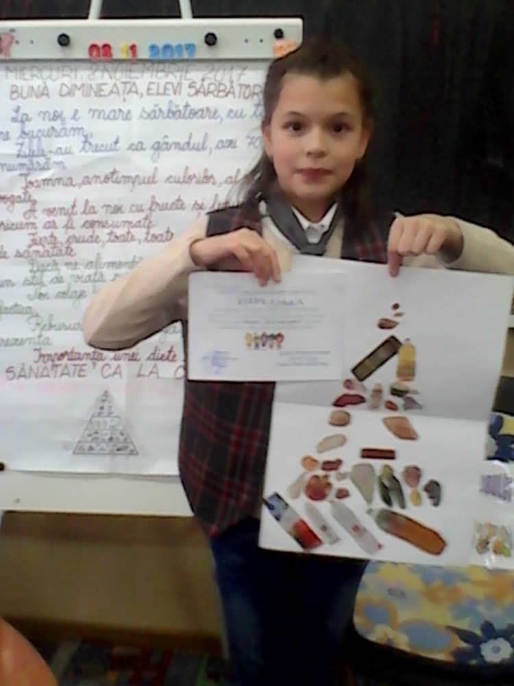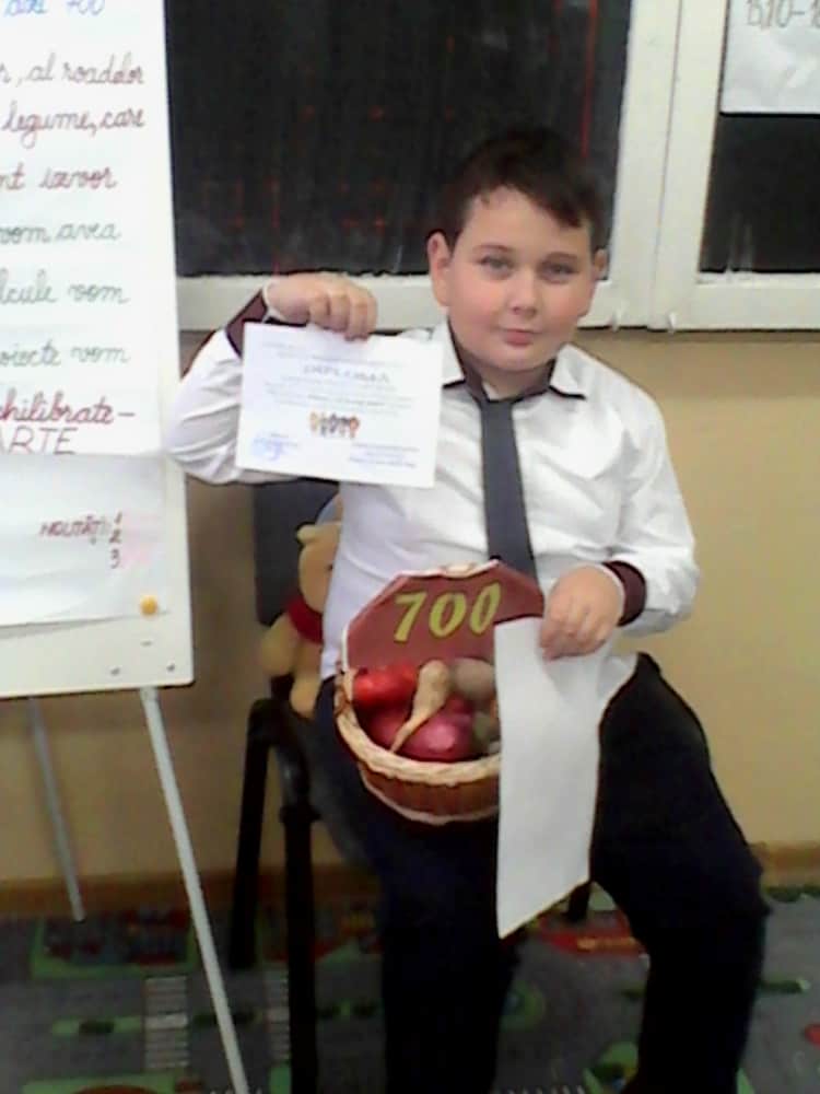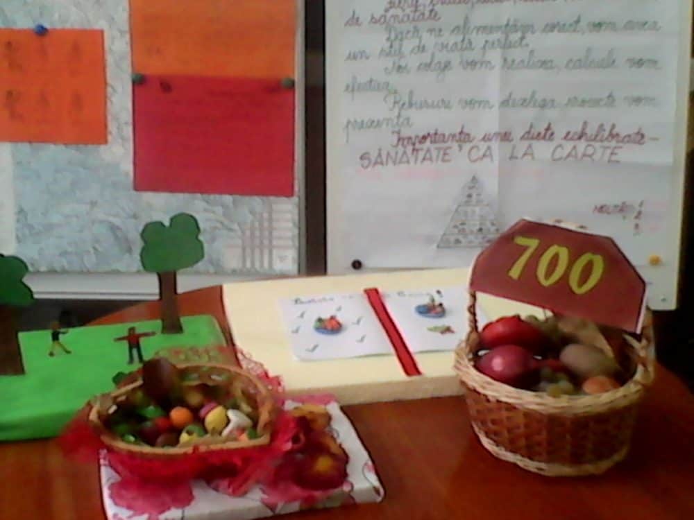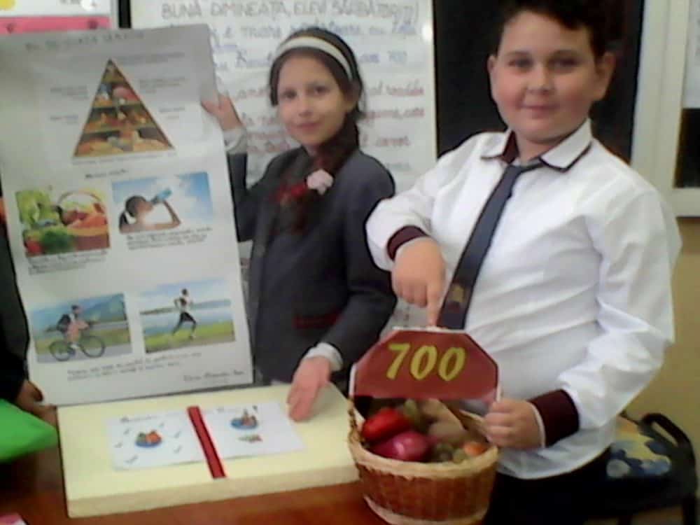 Îmbrǎcaţi în ţinutǎ de sǎrbǎtoare, elevii au aşteptat cu nerǎbdare începerea activitǎţilor la centre unde au desfǎşurat activitǎţi atractive: au desenat Piramida alimentelor, au dezlegat rebusul ,,Micul dejun”, au învăţat ,,Cântecul vitaminelor”, au modelat din plastilină coş cu fructe, au decupat mǎşti sub forma numǎrului 700.