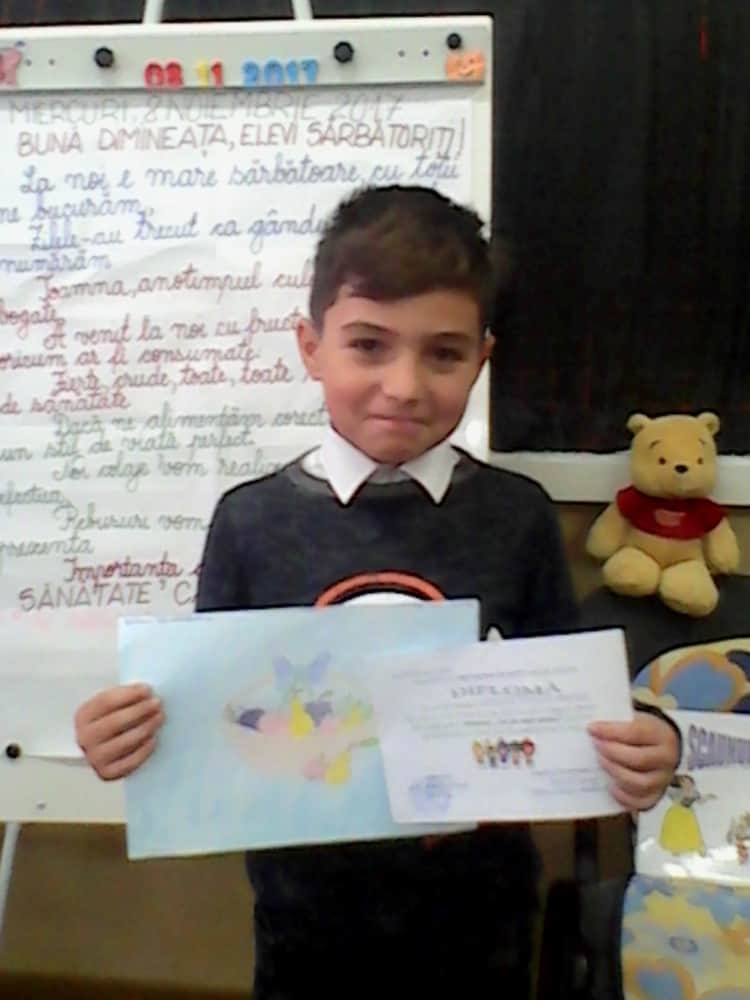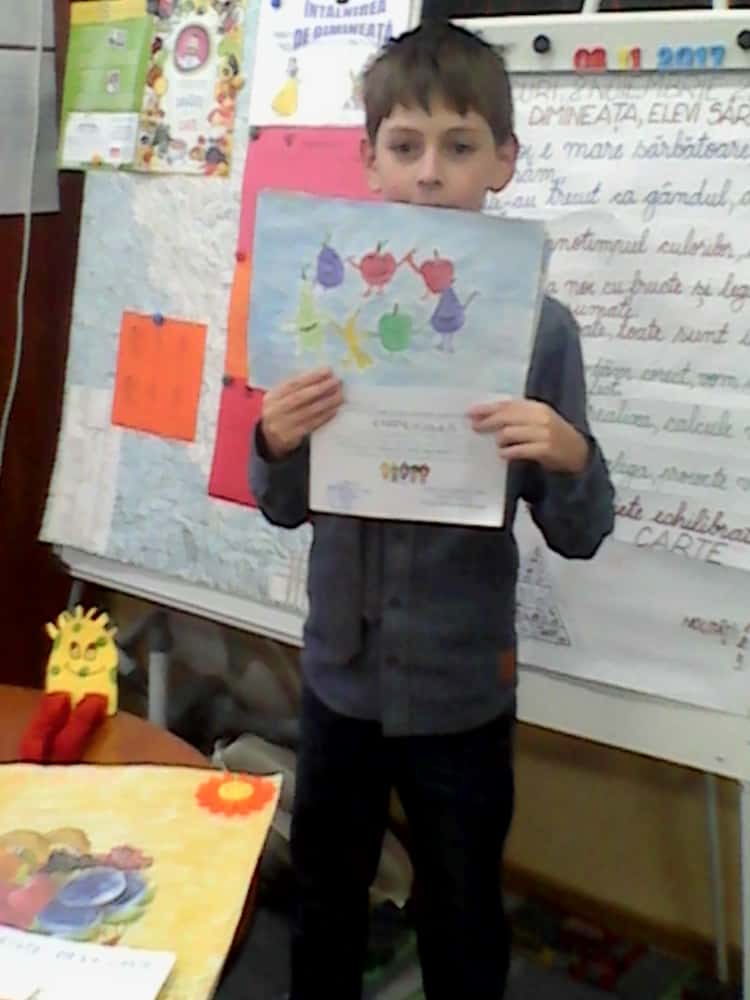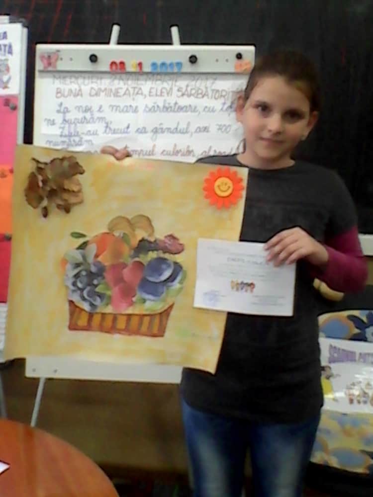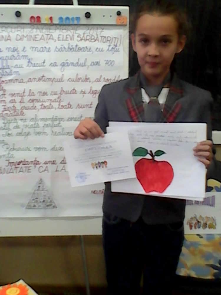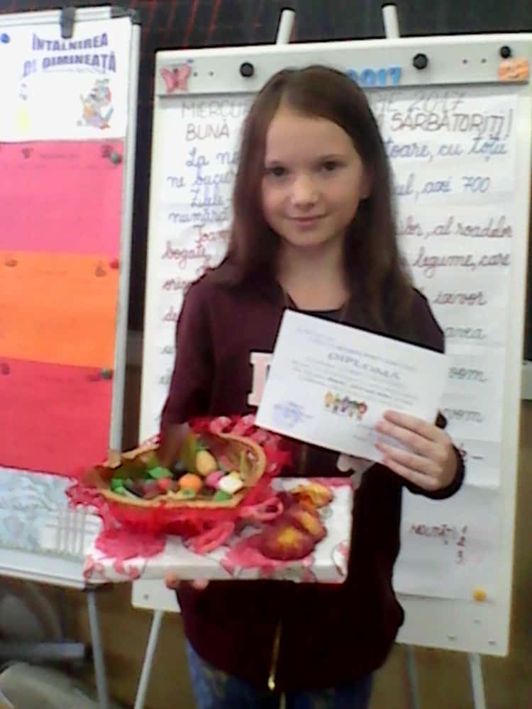 Munca le-a fost răsplătită cu diplome pentru creativitatea realizării proiectelor. Coşuri încărcate i-au îmbiat pe elevi să se înfrupte din roadele multicolore ale toamnei pline de vitamine şi aromate, iar ei bucuroşi au strigat toţi în cor ,,Nicio masă fără fructe!”.