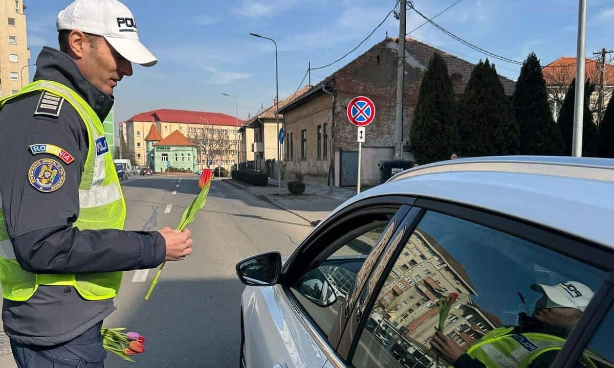 Femeile aflate la volan pe străzi din Alba Iulia au avut parte de o surpriză plăcută, de ziua lor. Acestea au primit flori din partea polițiștilor care le-au oprit în trafic.