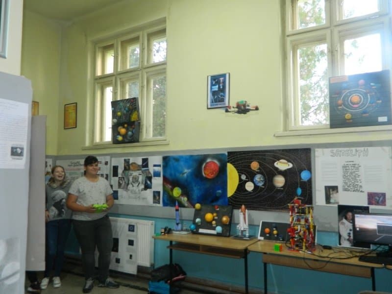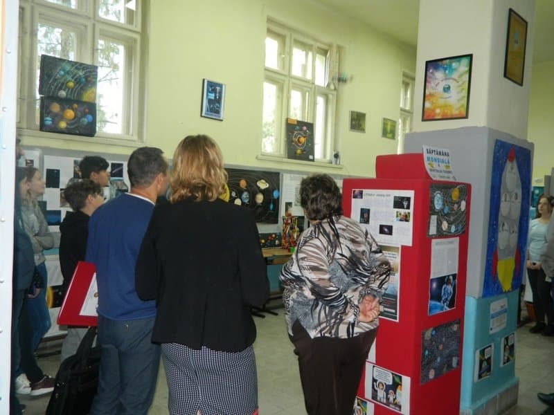 Prin activitățile desfășurate în această săptămână s-a dorit promovarea, în rândul elevilor, a cadrelor didactice și a comunității locale a beneficiilor explorării spațiului cosmic. Astfel, la biblioteca școlii a fost inaugată o expoziție de carte de specialitate iar în holul expozițional de la etajul I a fost vernisată expoziția de postere, colaje, machete ale elevilor claselor IX-X întitulată “Scurtă istorie a timpului într-un spațiu care unește lumea!”, expoziție deschisă pentru vizitare și în săptămâna 15-19 octombrie 2018. Elevii au fost provocați să ia parte la misiunea spațială de “a observa cerul” poziționați fiind în sala de clasă, prin folosirea m-learning-ului (învățarea cu ajutorul tehnologiei mobile) instalând pe telefoane aplicația gratuită Sky View "EXPLORE THE UNIVERS".
