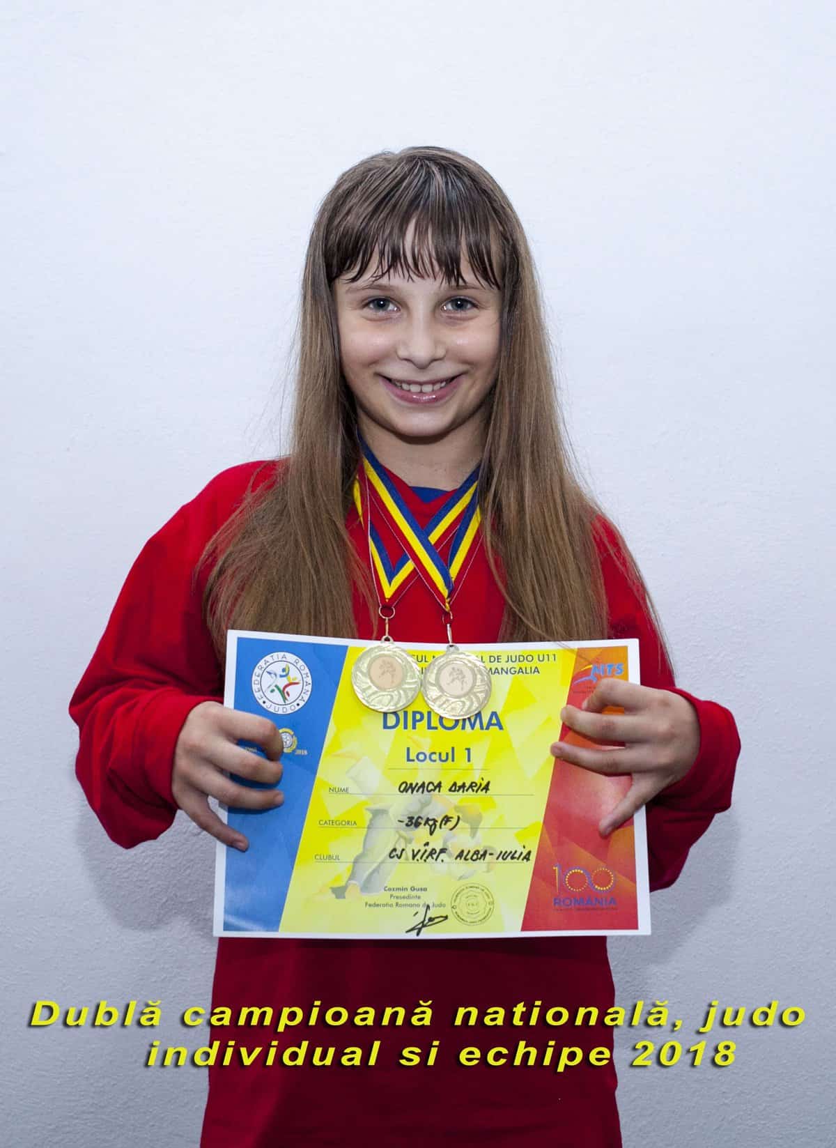 Sportiva Daria Onacă de la C.S. V.Î.R.F. Alba Iulia a devenit dublă campioană națională la judo, în cadrul etapei finale a concursului național desfășurat în perioada 7-10 iunie la Mangalia. Un alt sportiv al clubului albaiulian, Andrei Gavrilă, a câștigat medalia de argint.