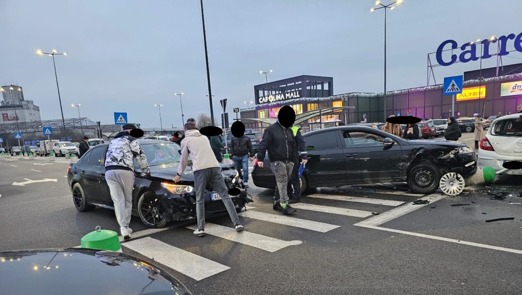 Un accident rutier a avut loc duminică, 7 decembrie, în jurul orei 16.30, în parcarea centrului comercial Carolina Mall din Alba Iulia.